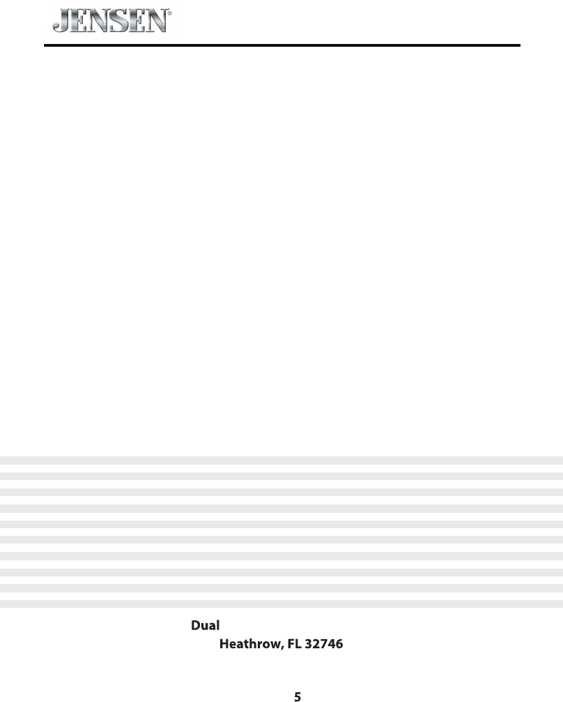Thank you for choosing a Jensen product. We hope you will nd the instructions