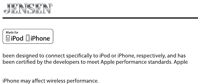 “Made for iPod” and “Made for iPhone” means that an electronic accessory has