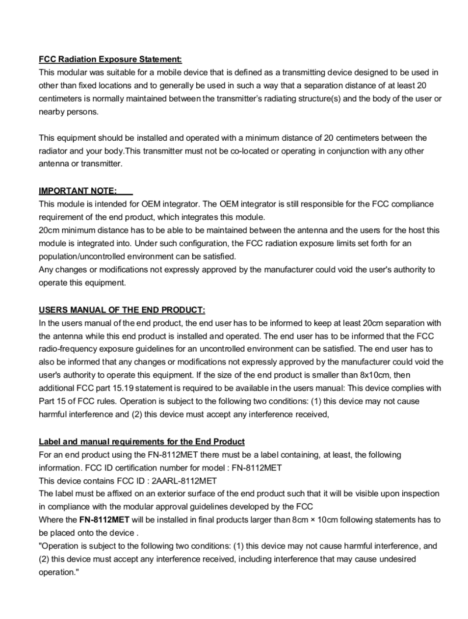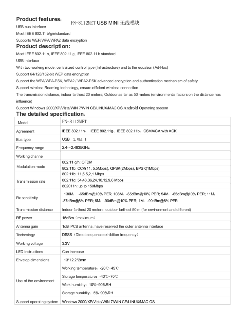 HUNAN FN LINK TECHNOLOGY 8112MET WIFI MODULE User Manual Manual