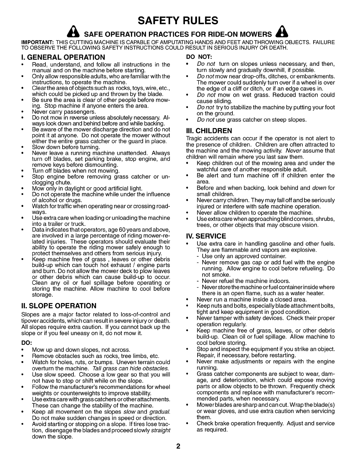 _, SAFE OPERATION PRACTICES FOR RIDE-ON MOWERS