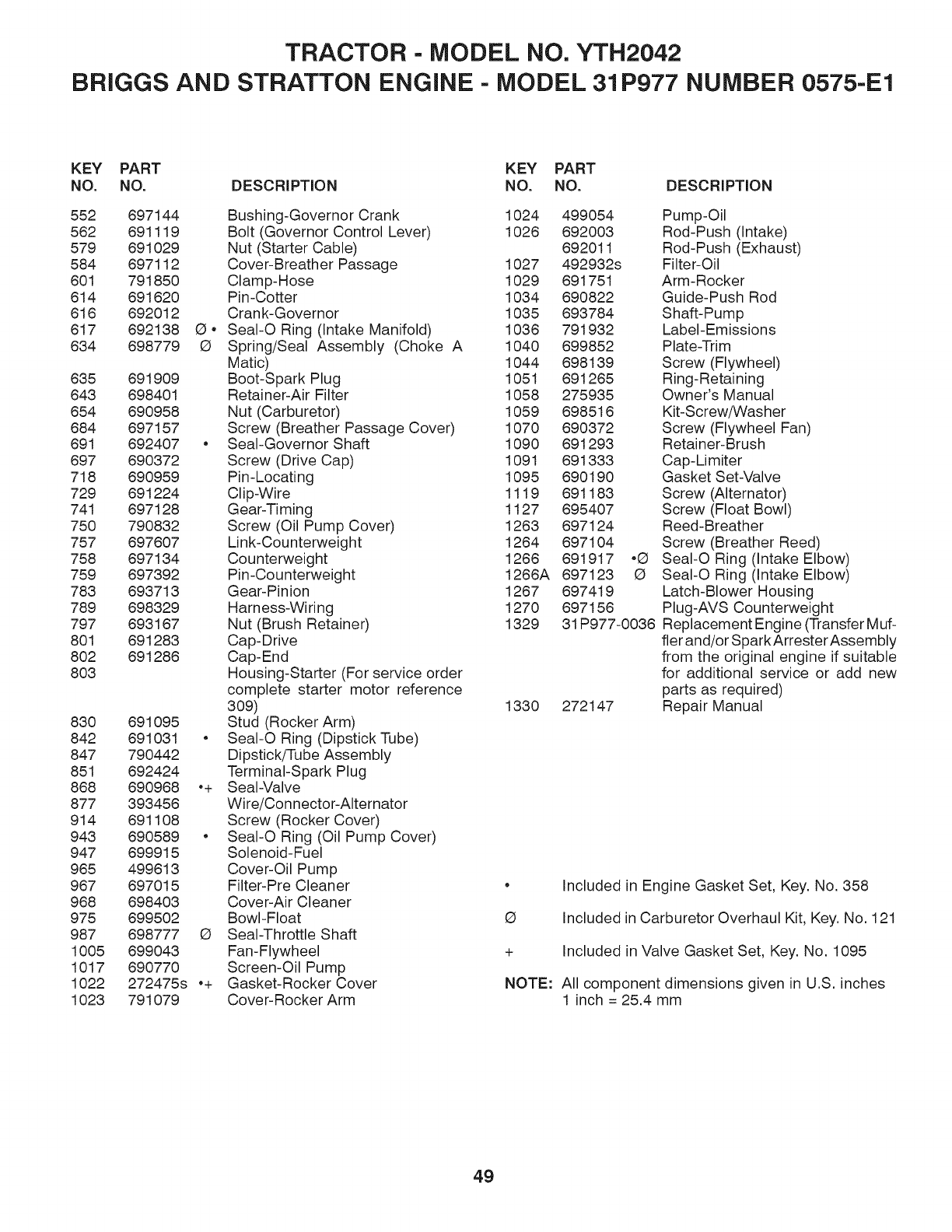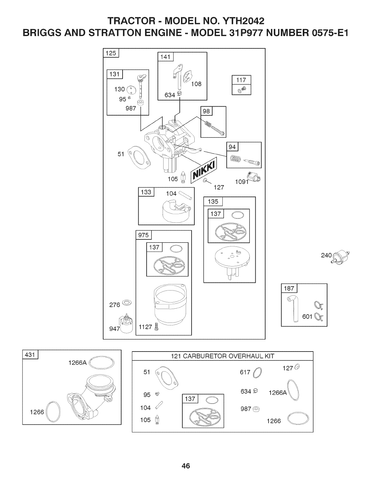G Included in Carburetor Overhaul Kit, Key. No. 121
