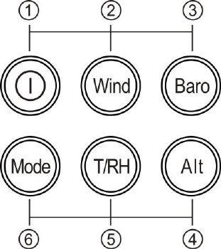 “MIN” of wind speed. Press and hold“⑥” for above 3