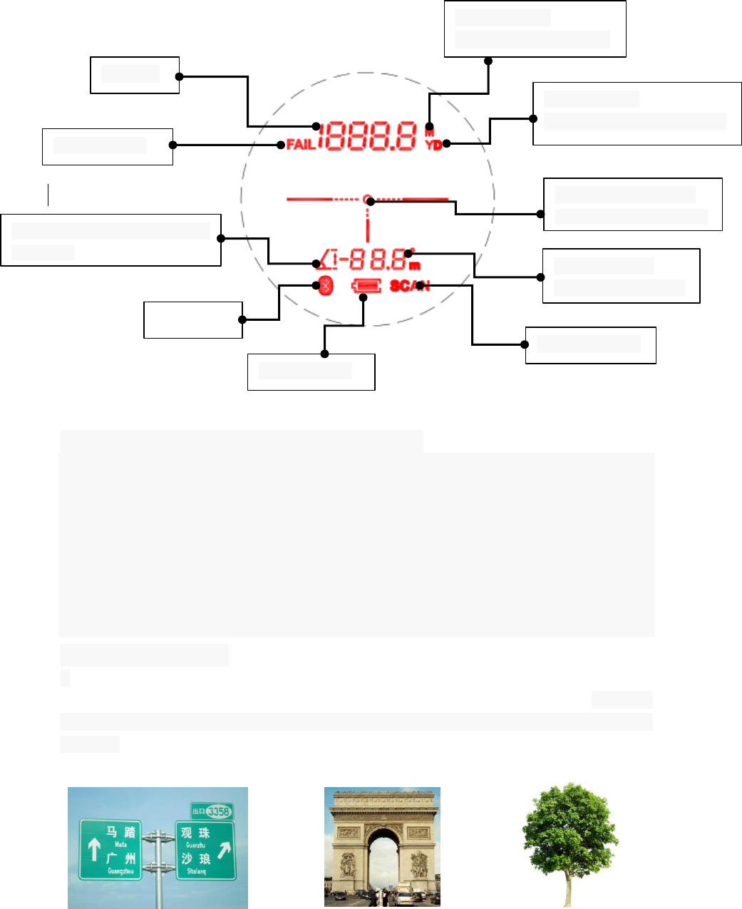 (such as trees, golf flag etc). The measuring range will be shortened as reflectivity