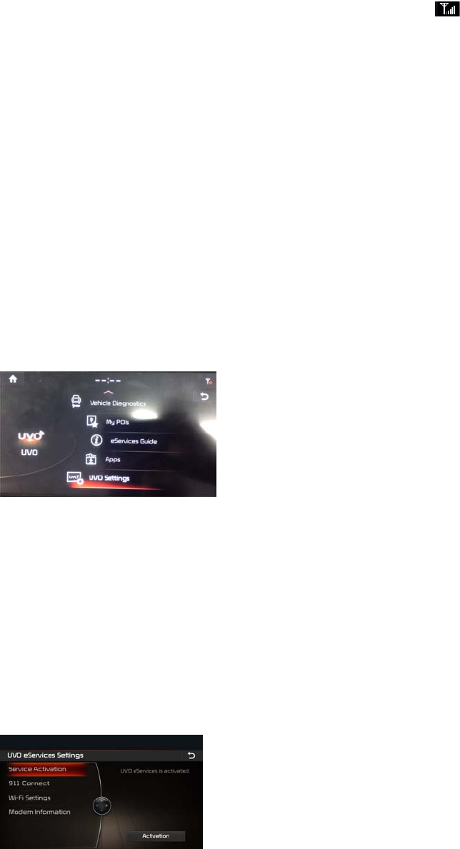 ▶ Select [UVO] key in the Headunit Select [UVO Settings] Select [Service Activation]