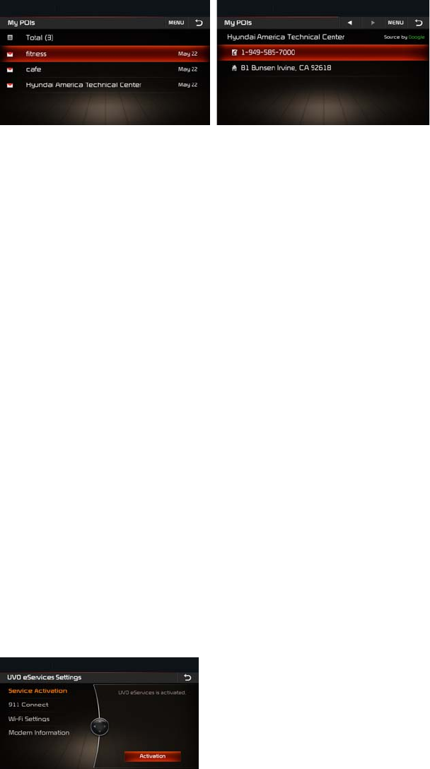 Registering UVO eServices is required to use My POIs.
