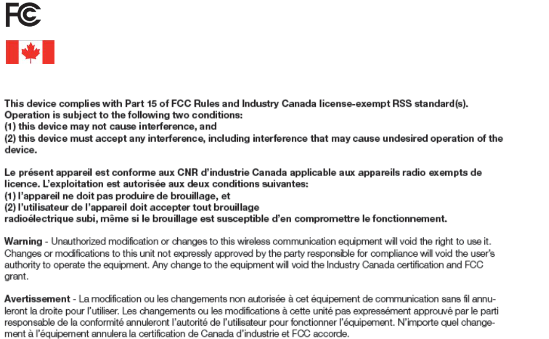 This device complies with Part 15 of FCC Rules and Industry Canada Iicense-exempt RSS standard(s).