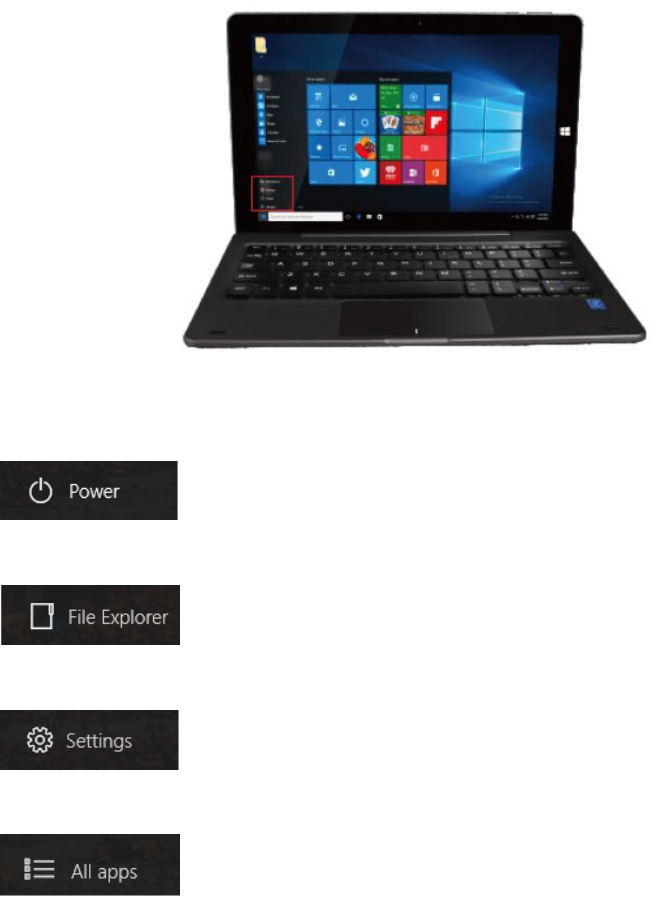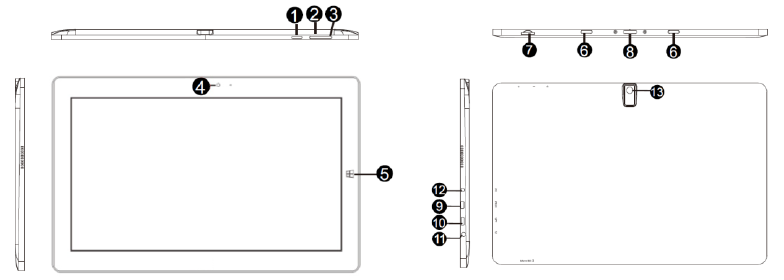 1) Power Button: The Tablet PC will power on after press this key 3 seconds. You can