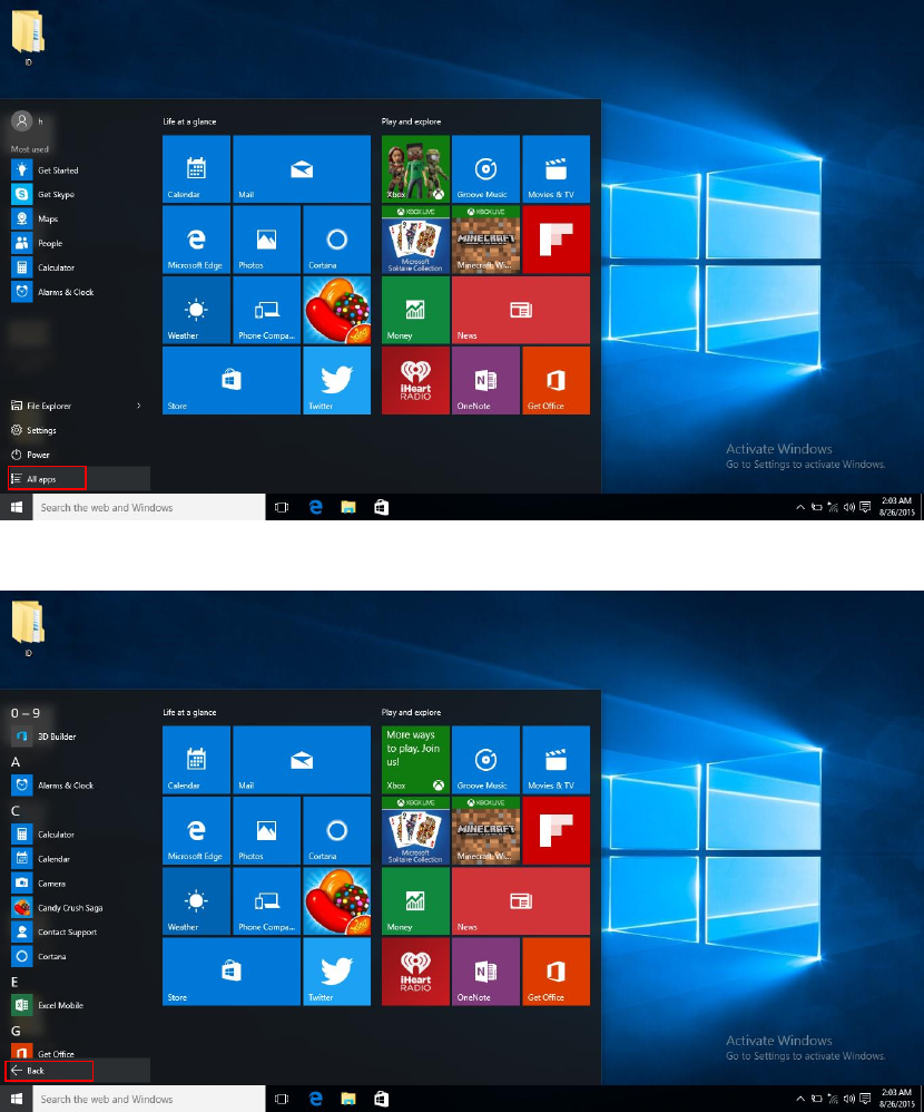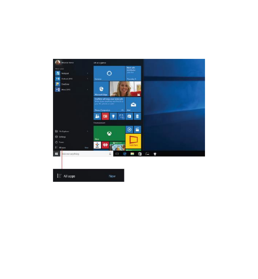 menu. Scroll down the app list to see all apps and programs alphabetically, from A to