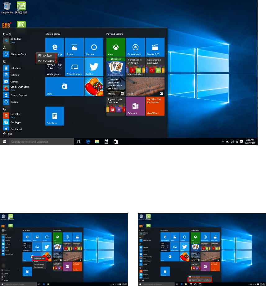 (3) Click the Pin to start or pin to taskbar, as follow: