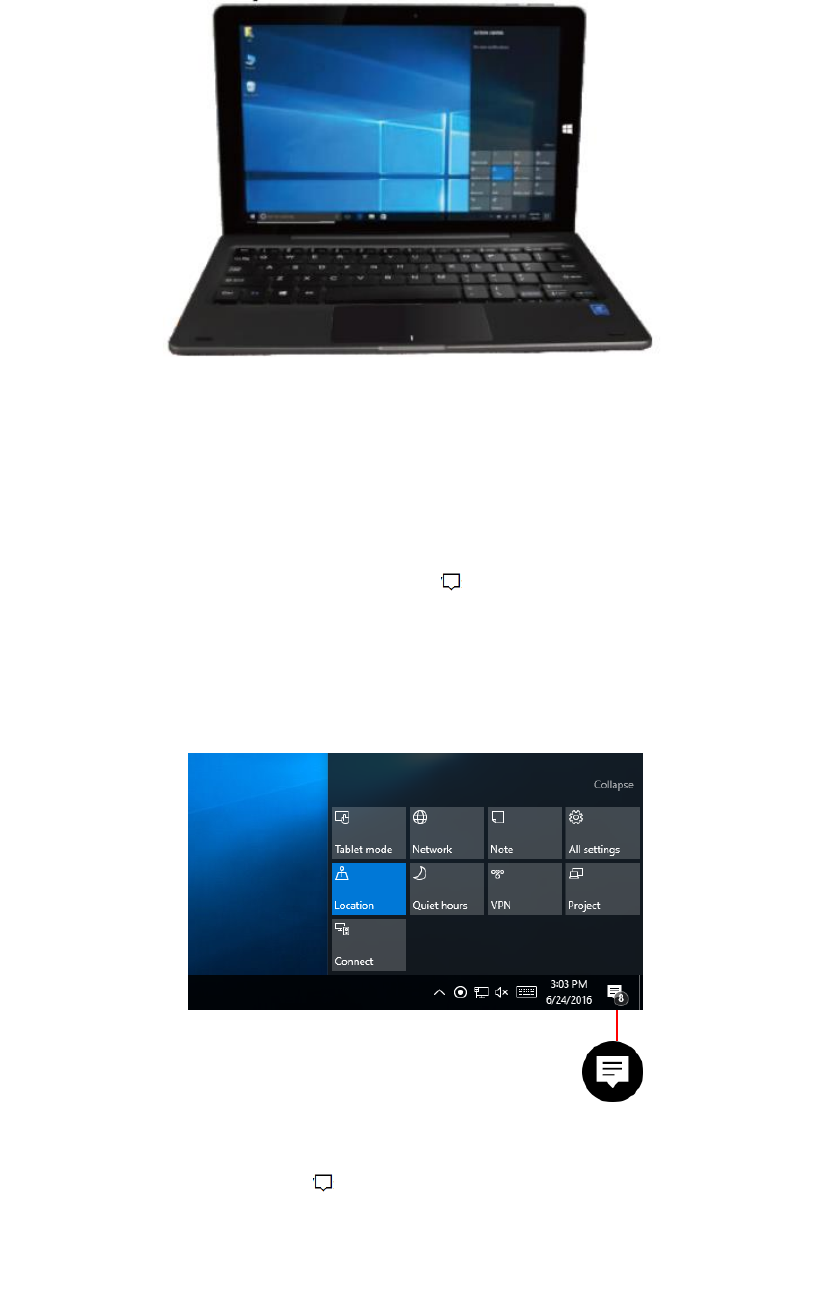 Action Center is a notification center also allows for quick settings like Tablet / PC mode,