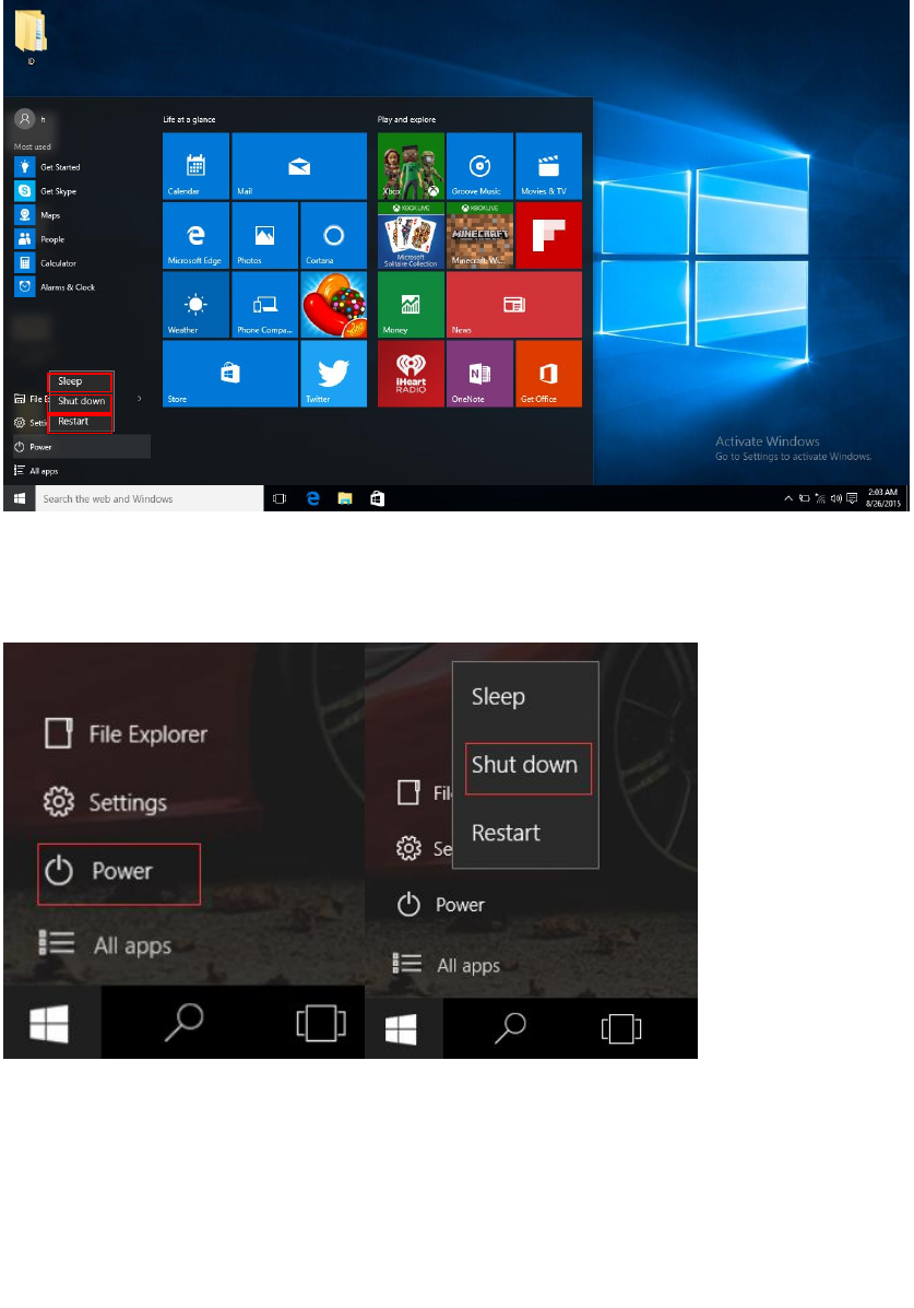 ③ hit the Start menu, click on the "Power" button, select "Off" button.
