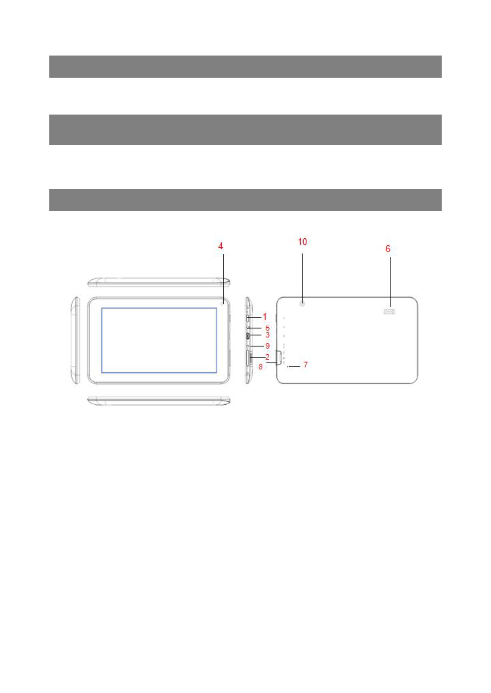 3. Micro USB port – Connects to PC via USB cable / Connects to USB memory device,