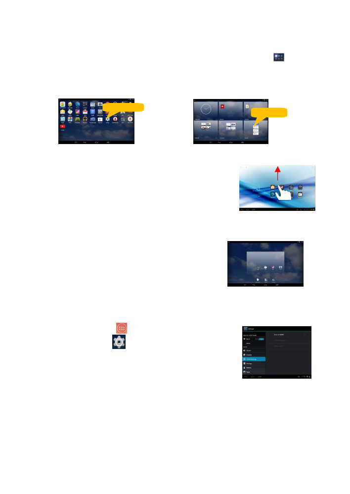 the interface as the left picture .Then tap the WIDGETS to display the widgets