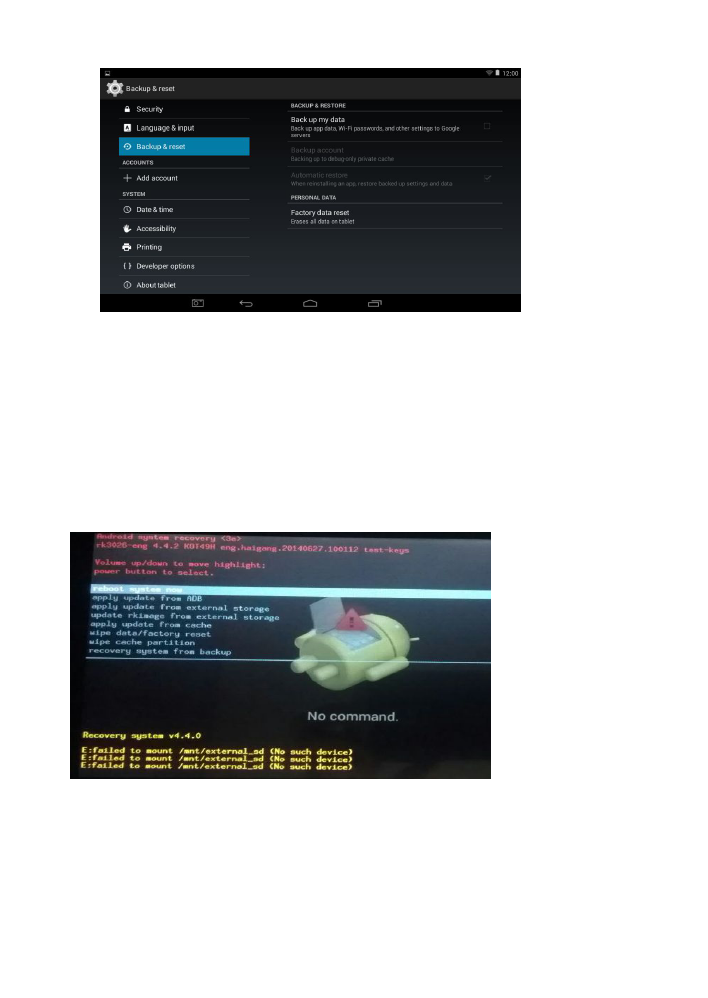 WARNING:Your tablet will be reset to factory default and all data will be deleted.