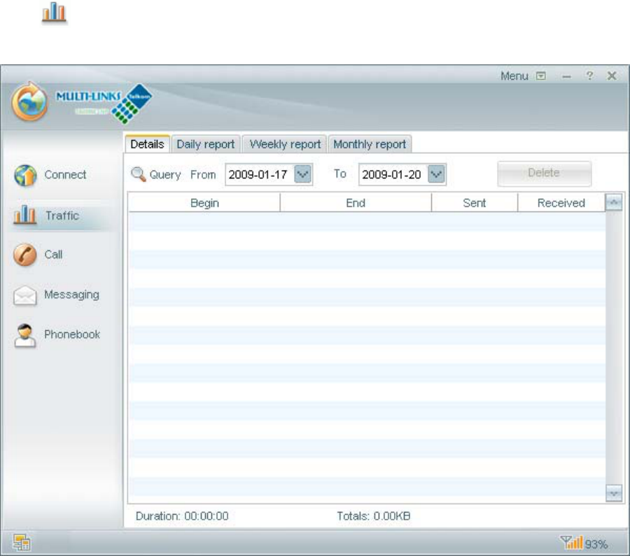 Click to enter the "Traffic" window. You can view the flow information in the specified period