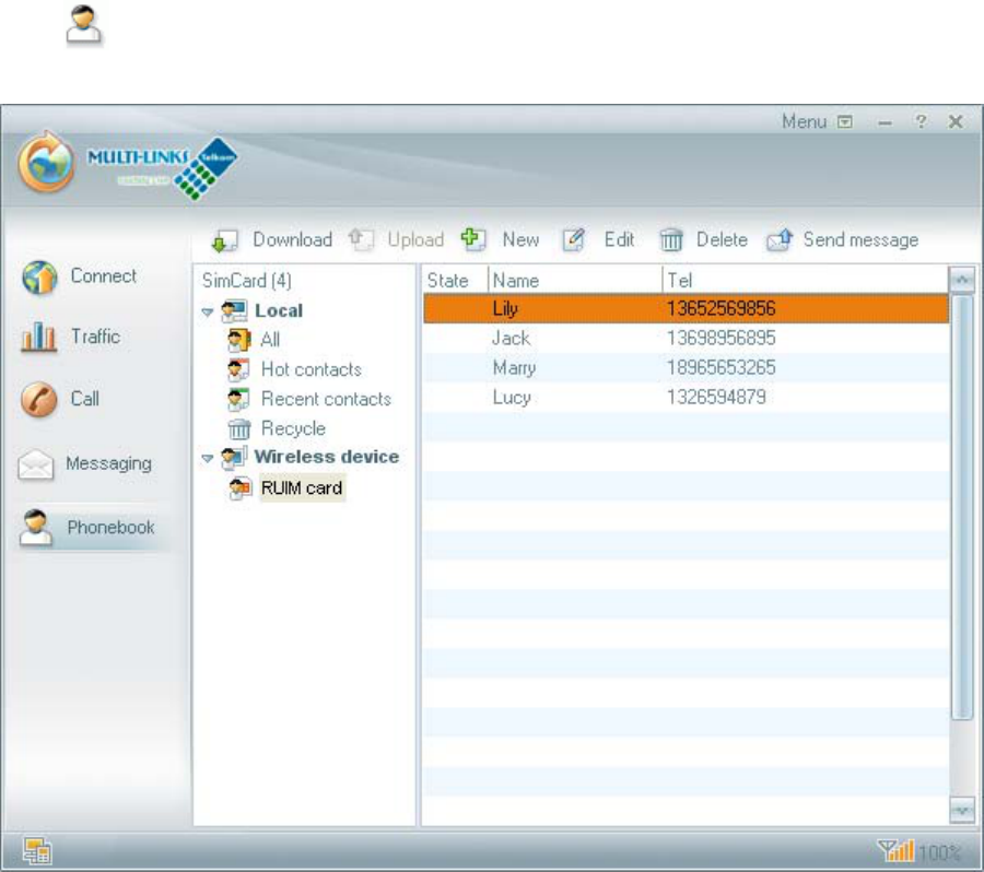 Click to enter "Phonebook" interface. There are "Wireless device contact" and "Local