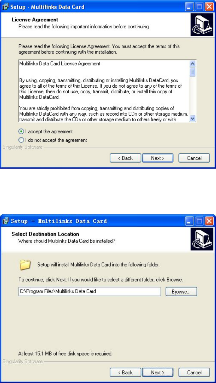 3. Please select "I accept the agreement" and "Next" in License interface.