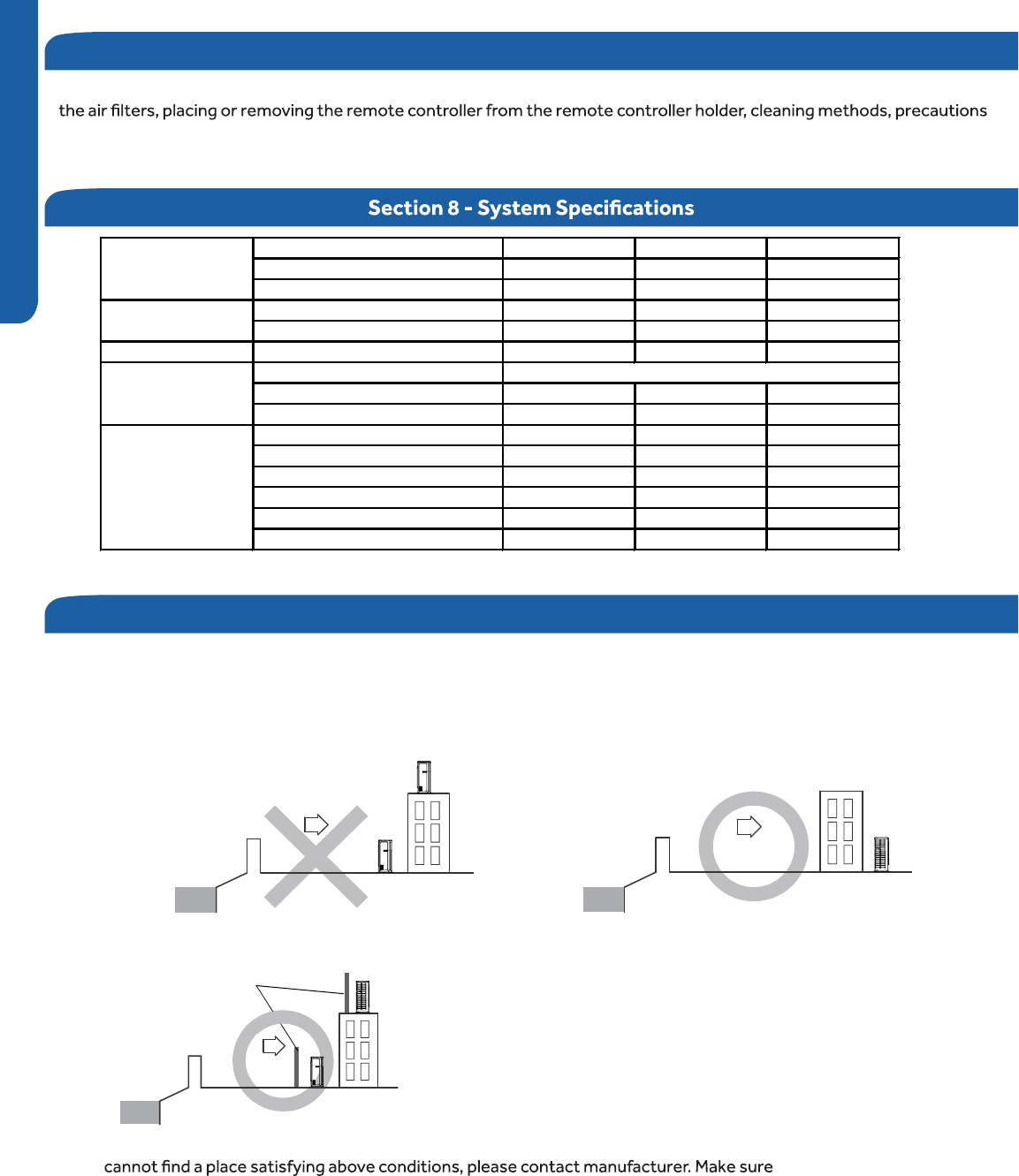 • Install the outdoor unit in a place (such as near buildings etc.) where it can be protected from sea breeze which can damage