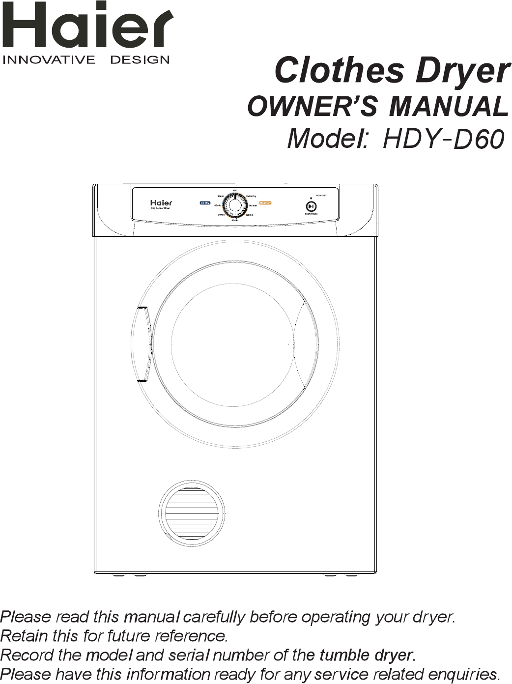 Haier Clothes Dryer HDY-D60 hdy-d60_user_manual