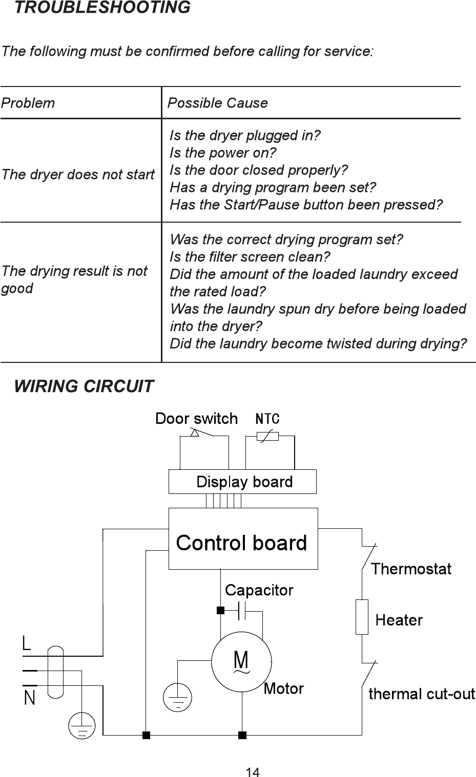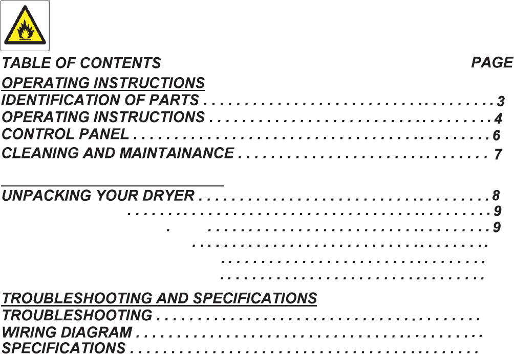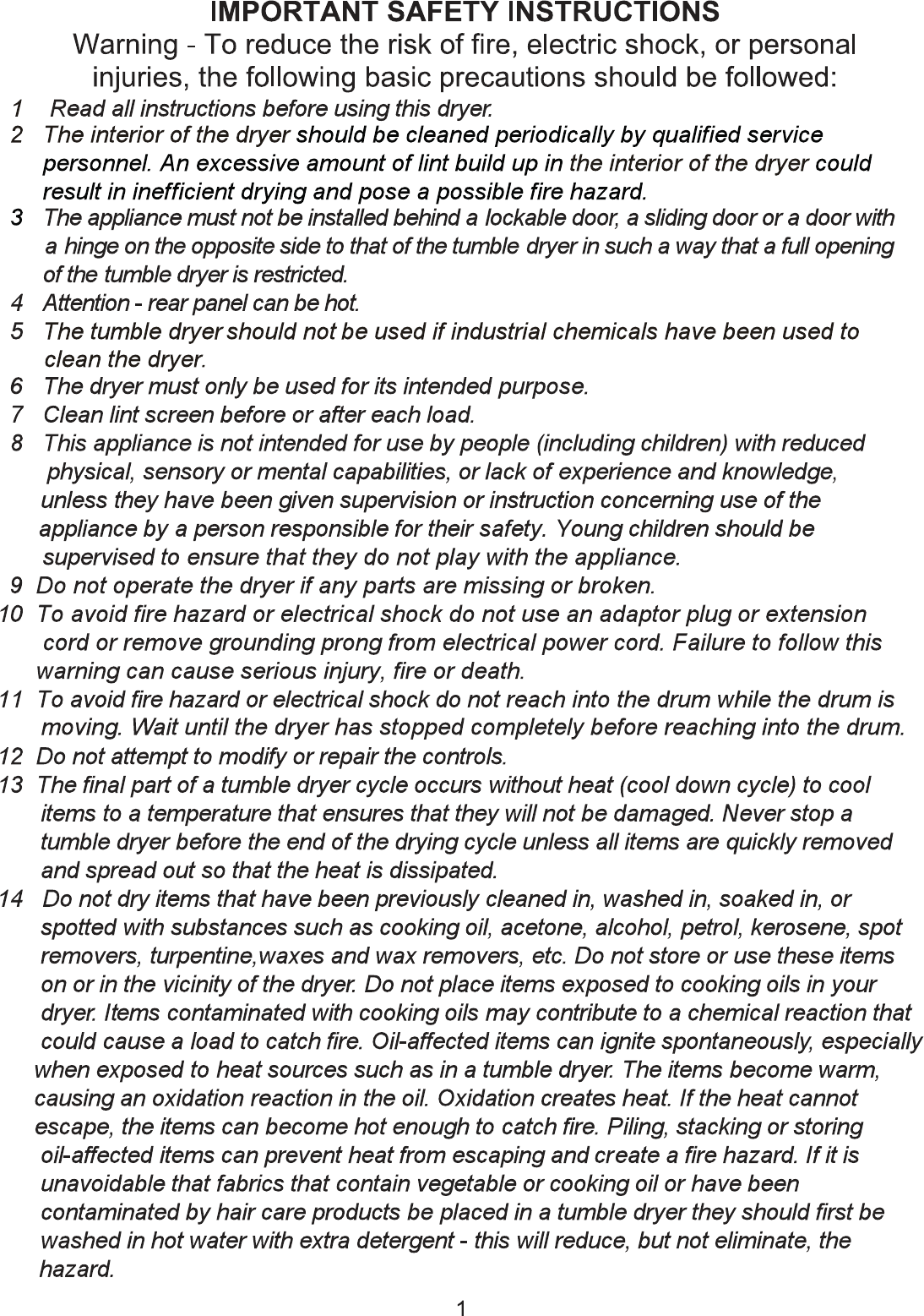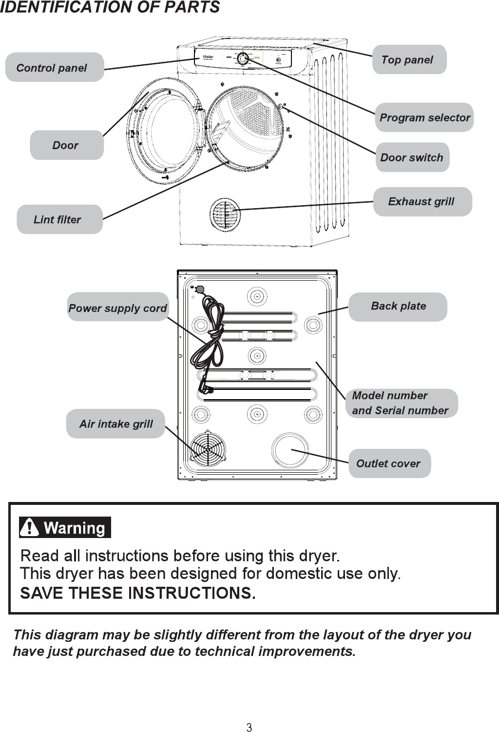19 Do not install or store this dryer where it will be exposed to water and /or the weather.