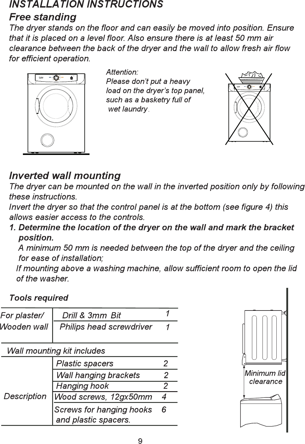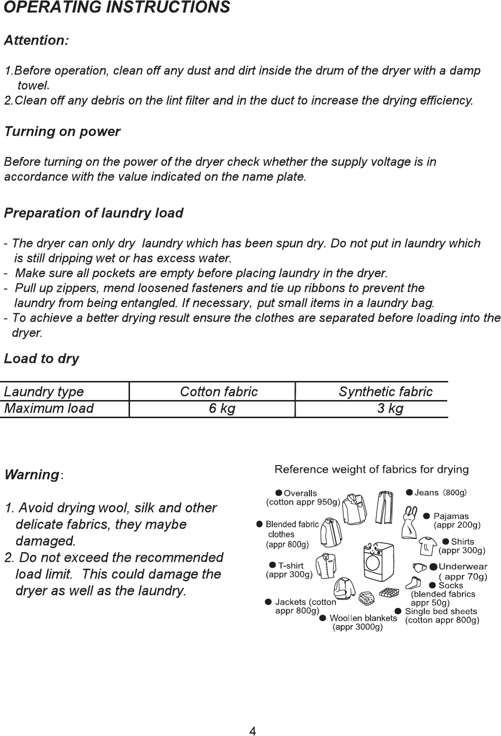 efficient and better drying result, make sure the load has been spun dry. Try to
