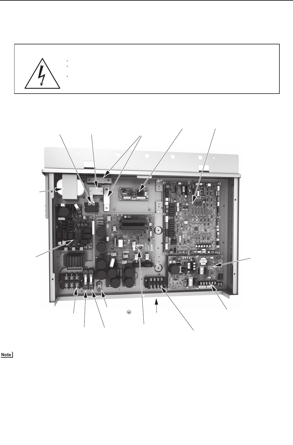 Control box houses high-voltage parts.
