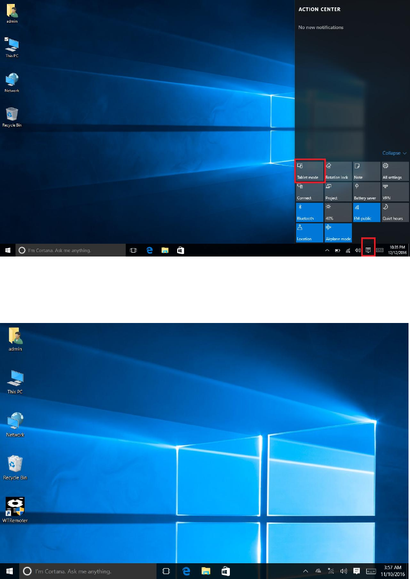 Note: Every time start up the tablet will recover to tablet mode, if we