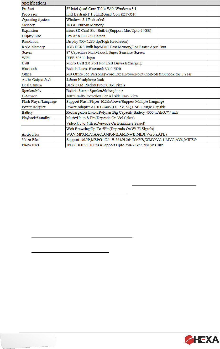 Hallmark Global LTD. dba HEXA. Windows Tablet PC HEXA Spring8 ok