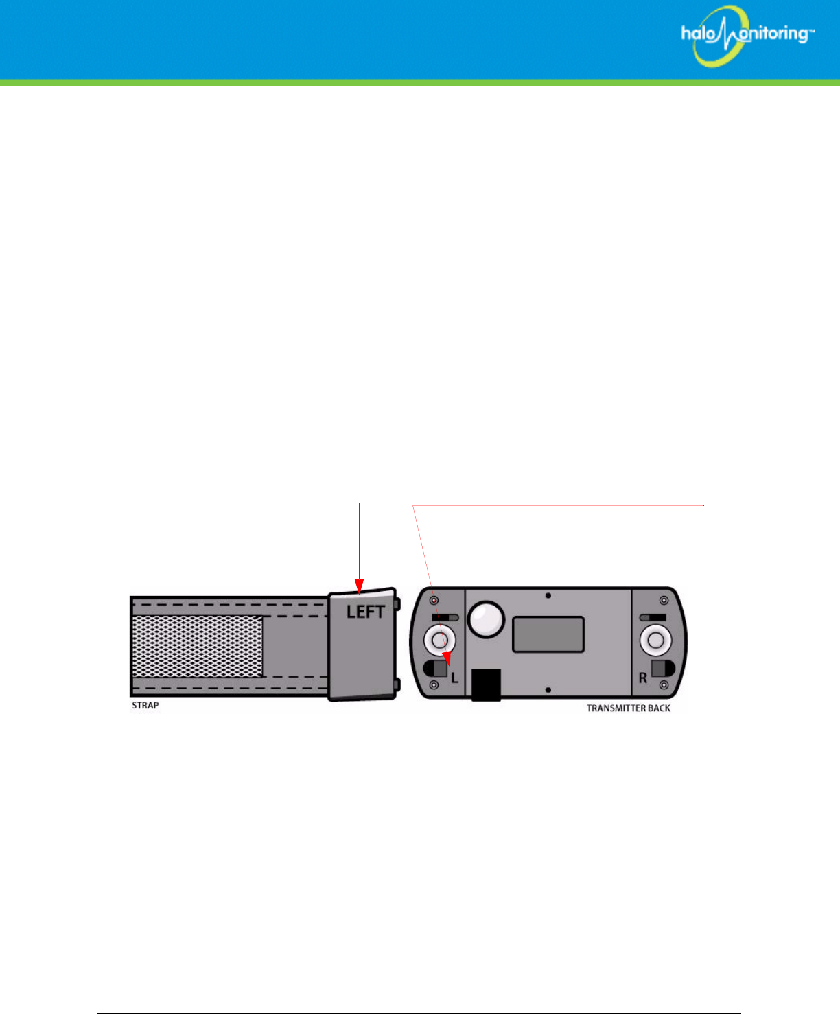 transmitter on one side. Be sure to match the strap’s LEFT side to the transmitter’s