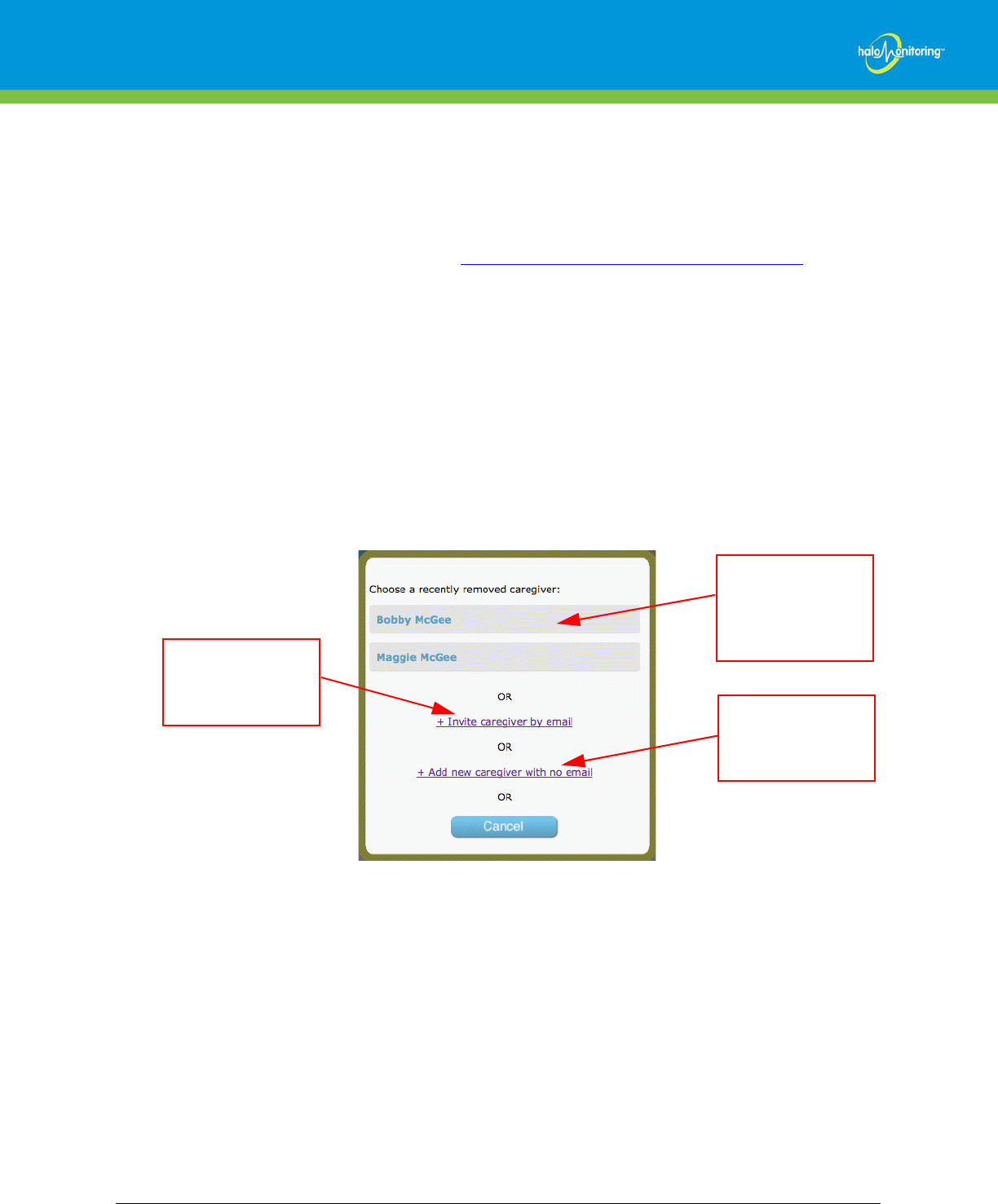 •Selecting a previously removed caregiver reinstates the caregiver and all their information