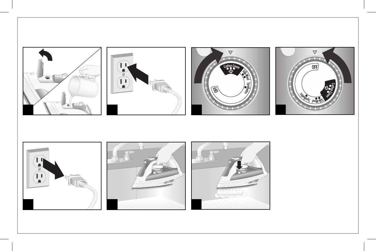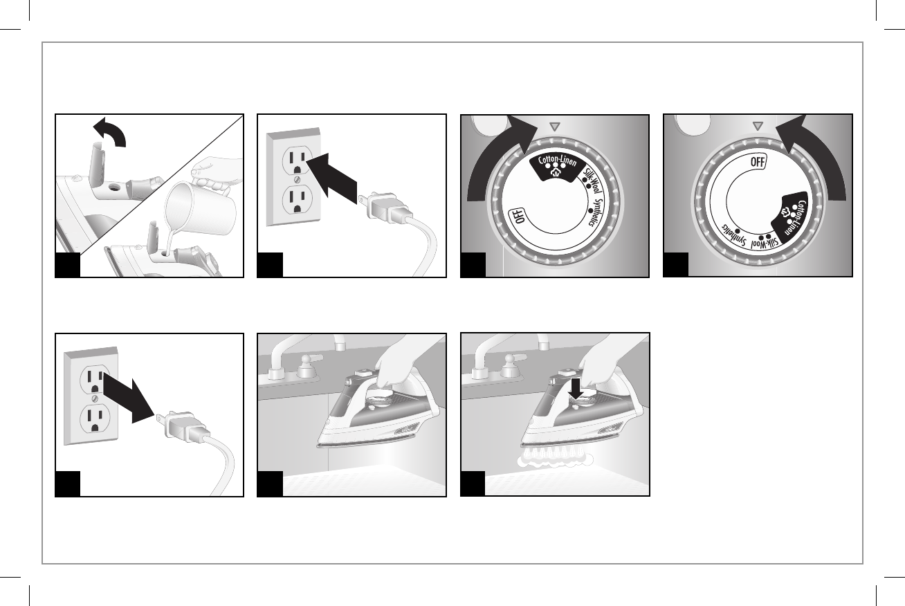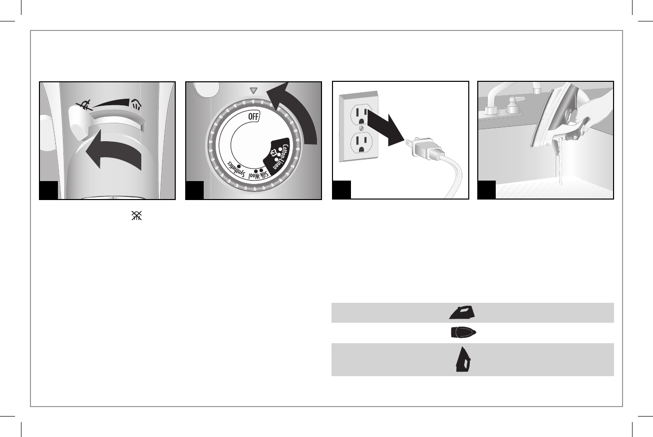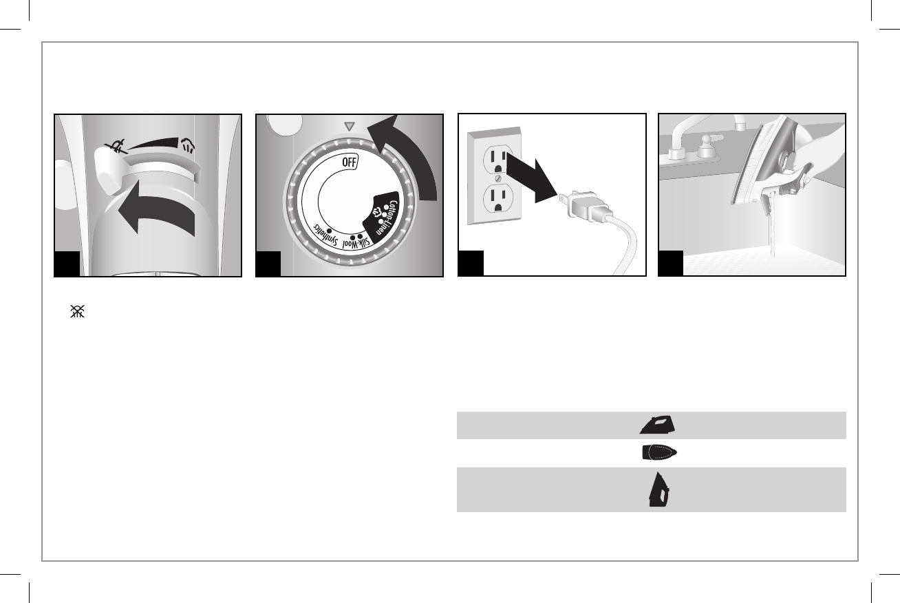 4. Do not let the cord touch hot surfaces. Let the iron cool