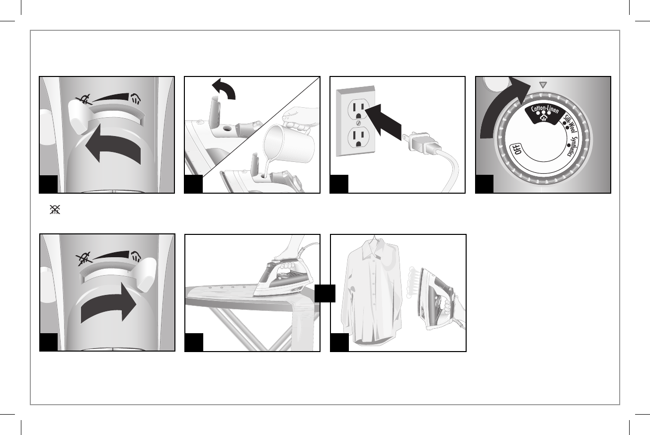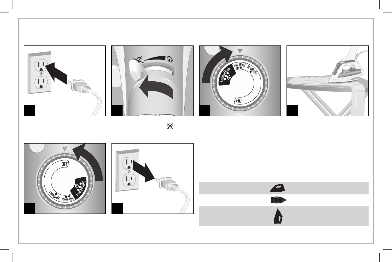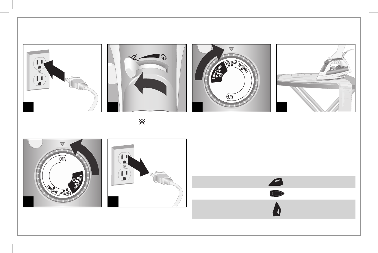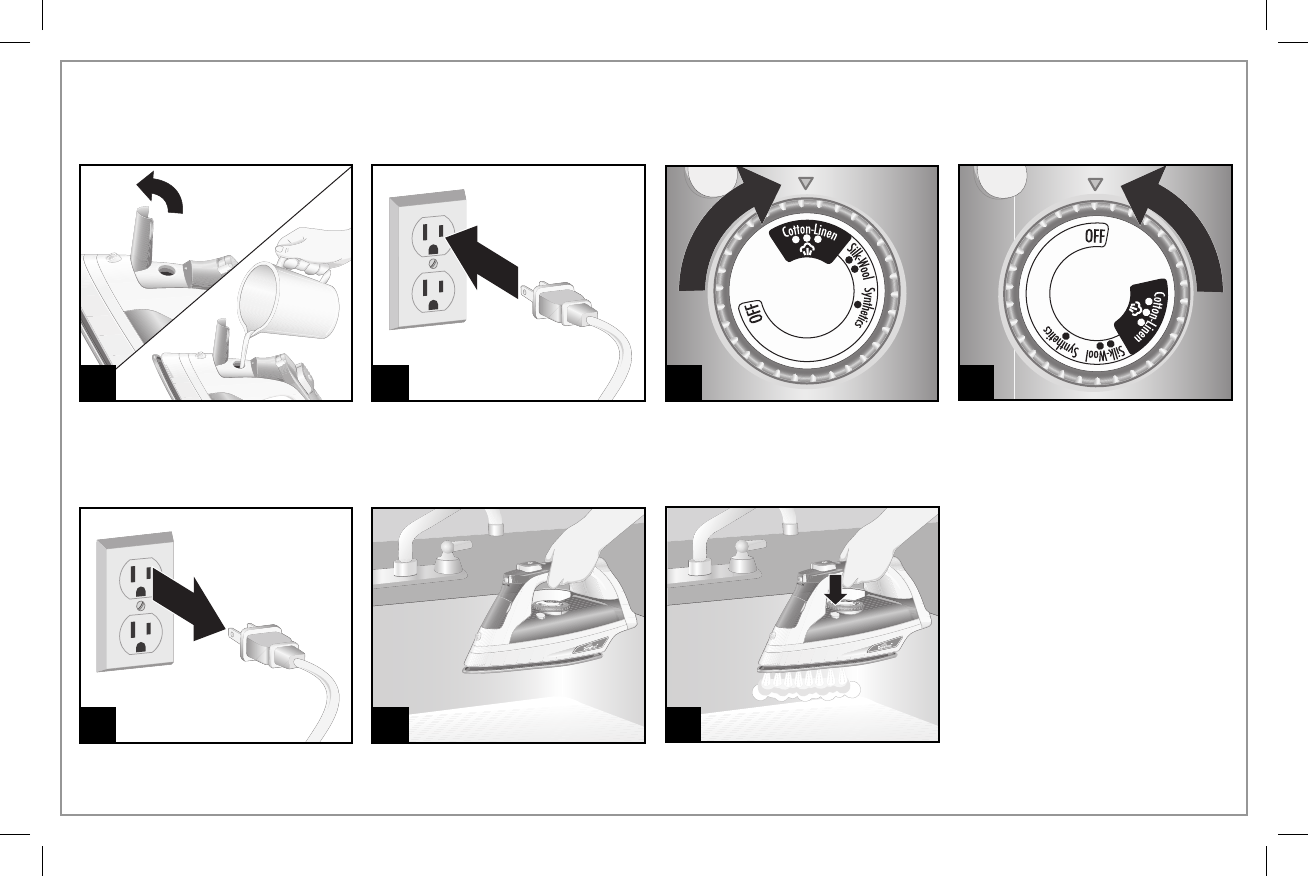 4. Do not let the cord touch hot surfaces. Let the iron cool