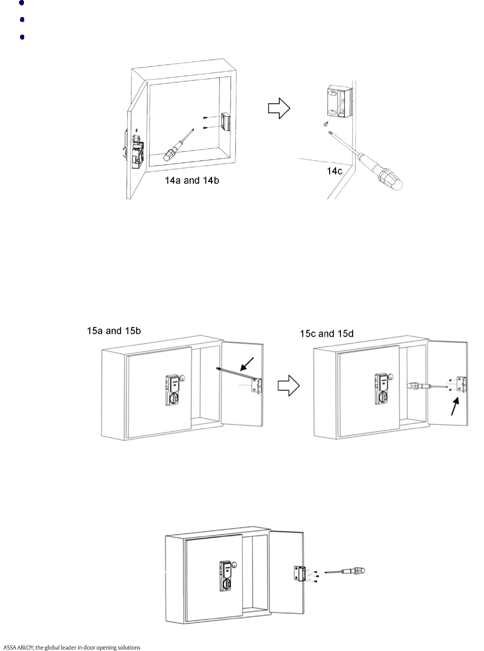 The Installer must ensure that the lock can be opened before closing the cabinet door.