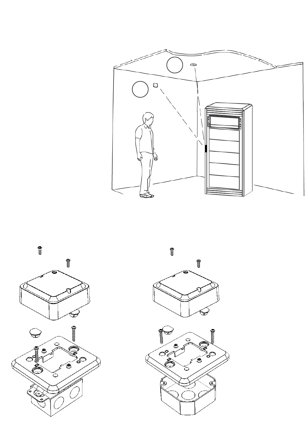 1. INSTALL a separately purchased dress cover (R100-DCA) on the inside of a glass mounting surface.