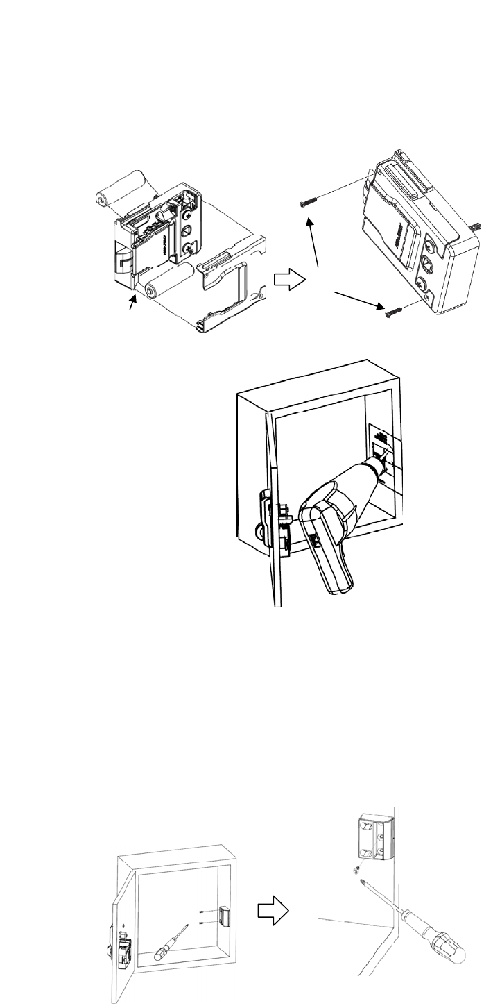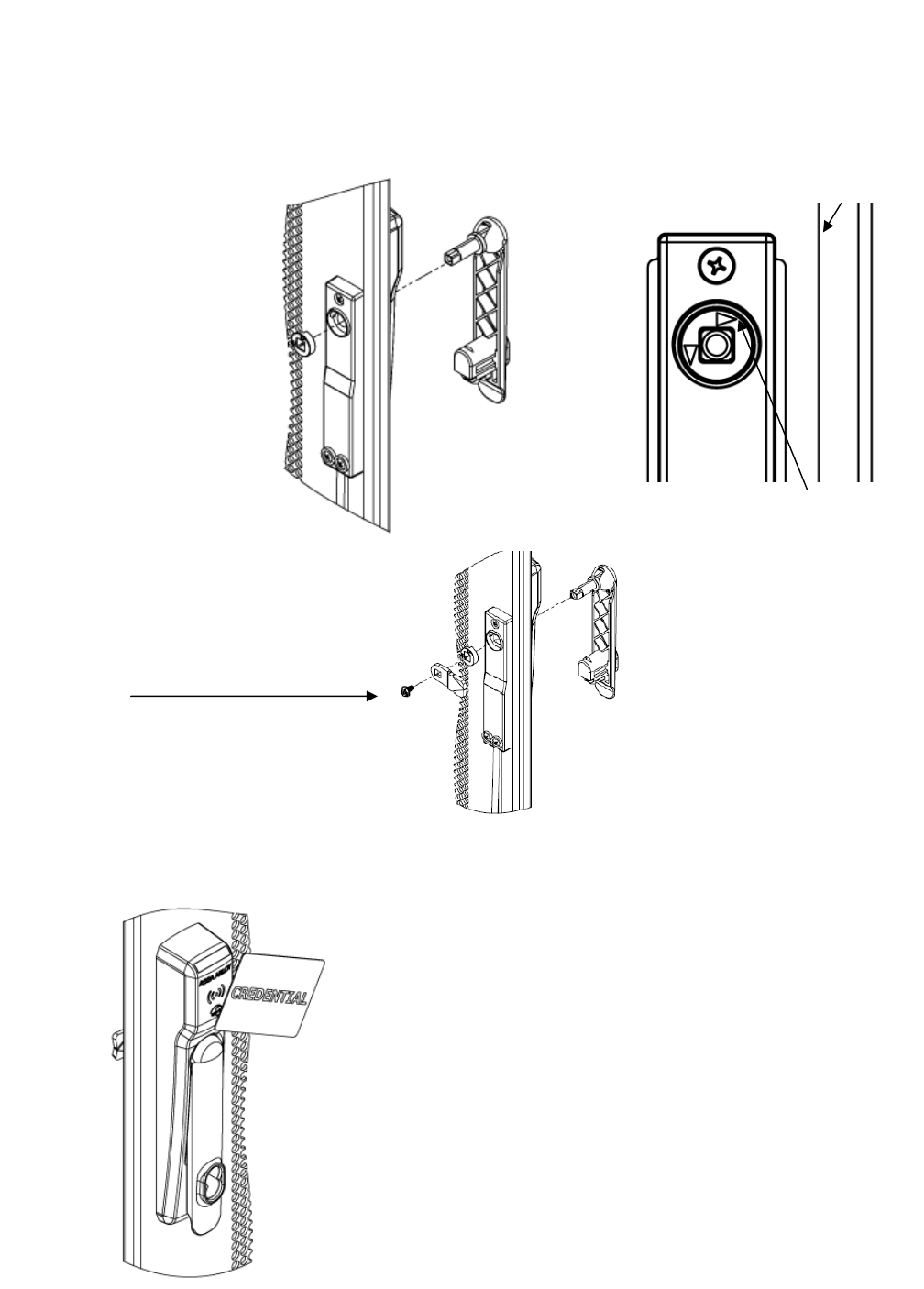 d. REATTACH electronic module by sliding the top under the mounting plate’s raised edges and