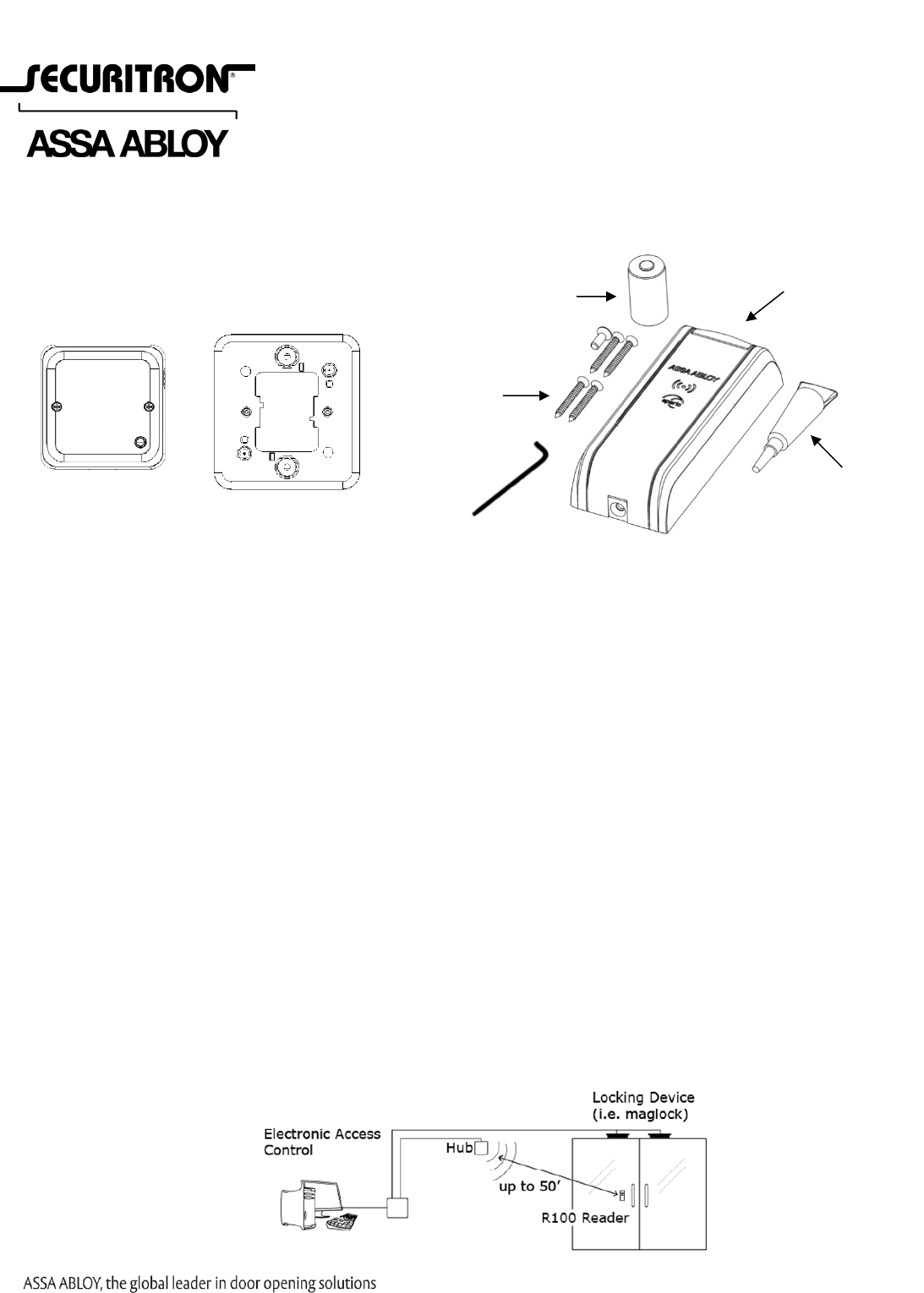 reasons. The R100 connects to the access control system through the included communication hub, and the