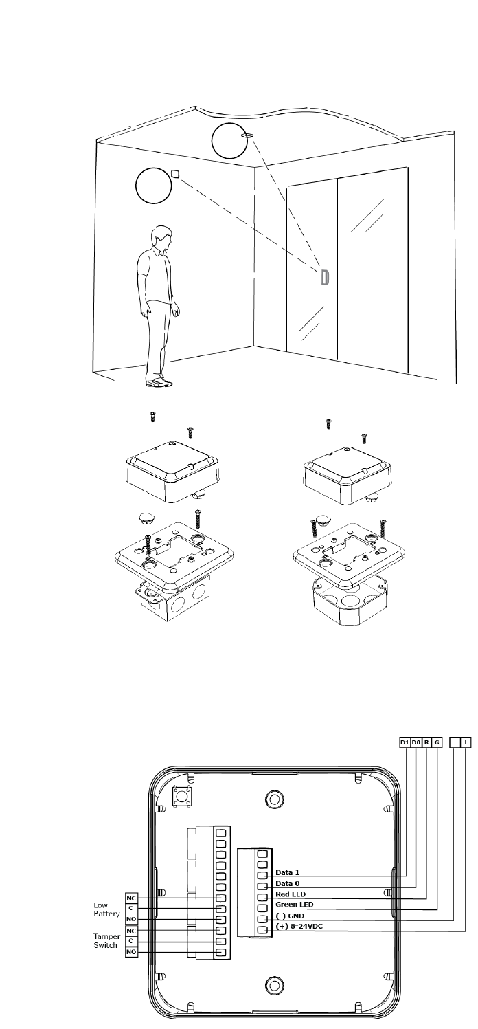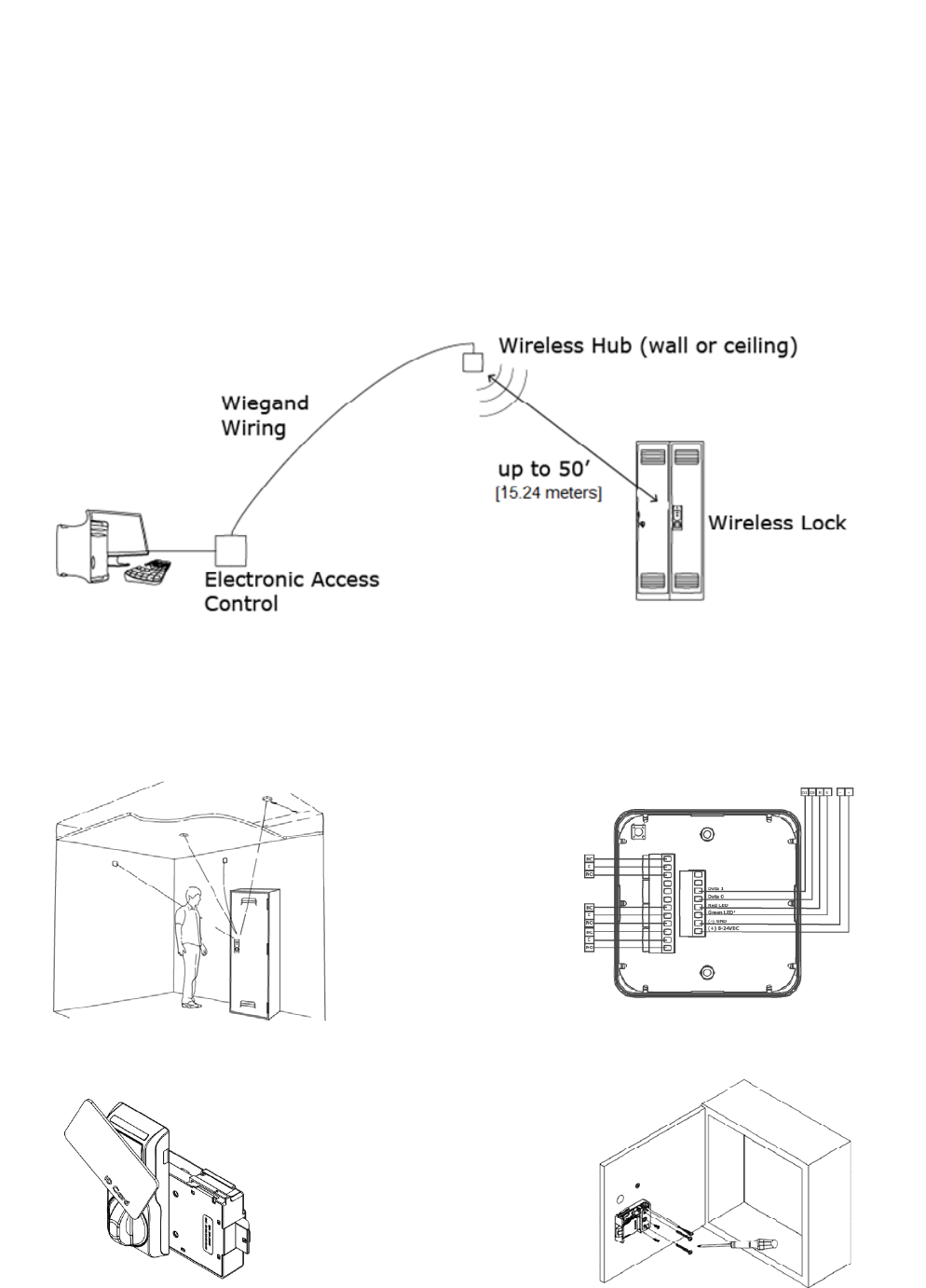 communication hub. The communication hub then communicates through Wiegand wiring to the access control