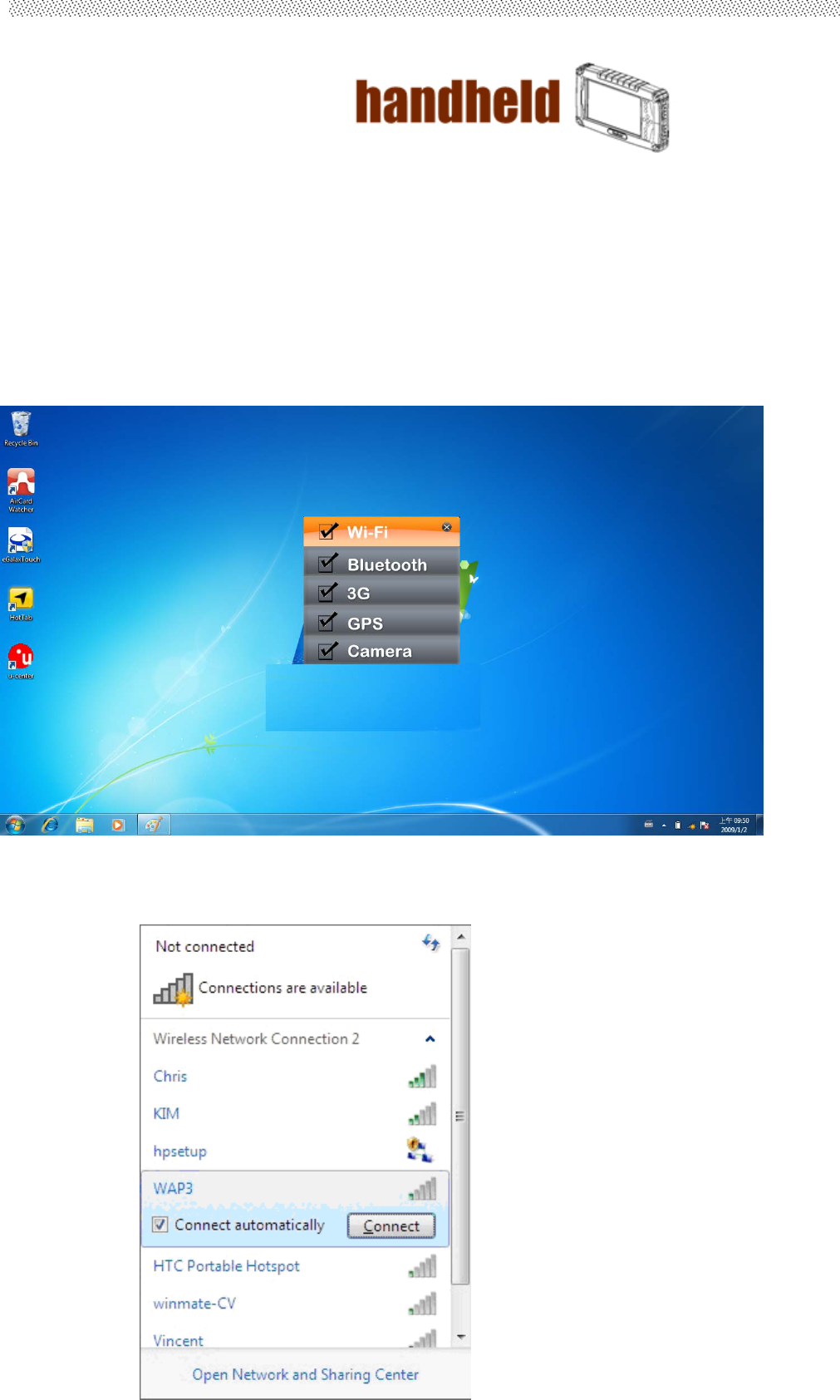 1. PresstheMenubuttononyourTabletPCtoopentheHottabmenu.Clickthe“Wi‐Fi”toswitchthewireless