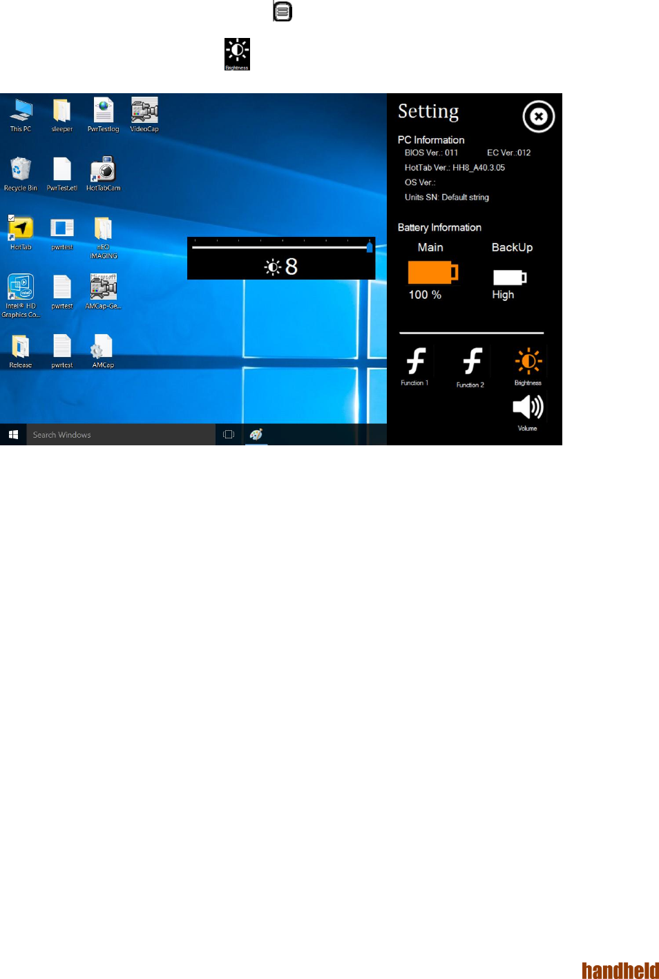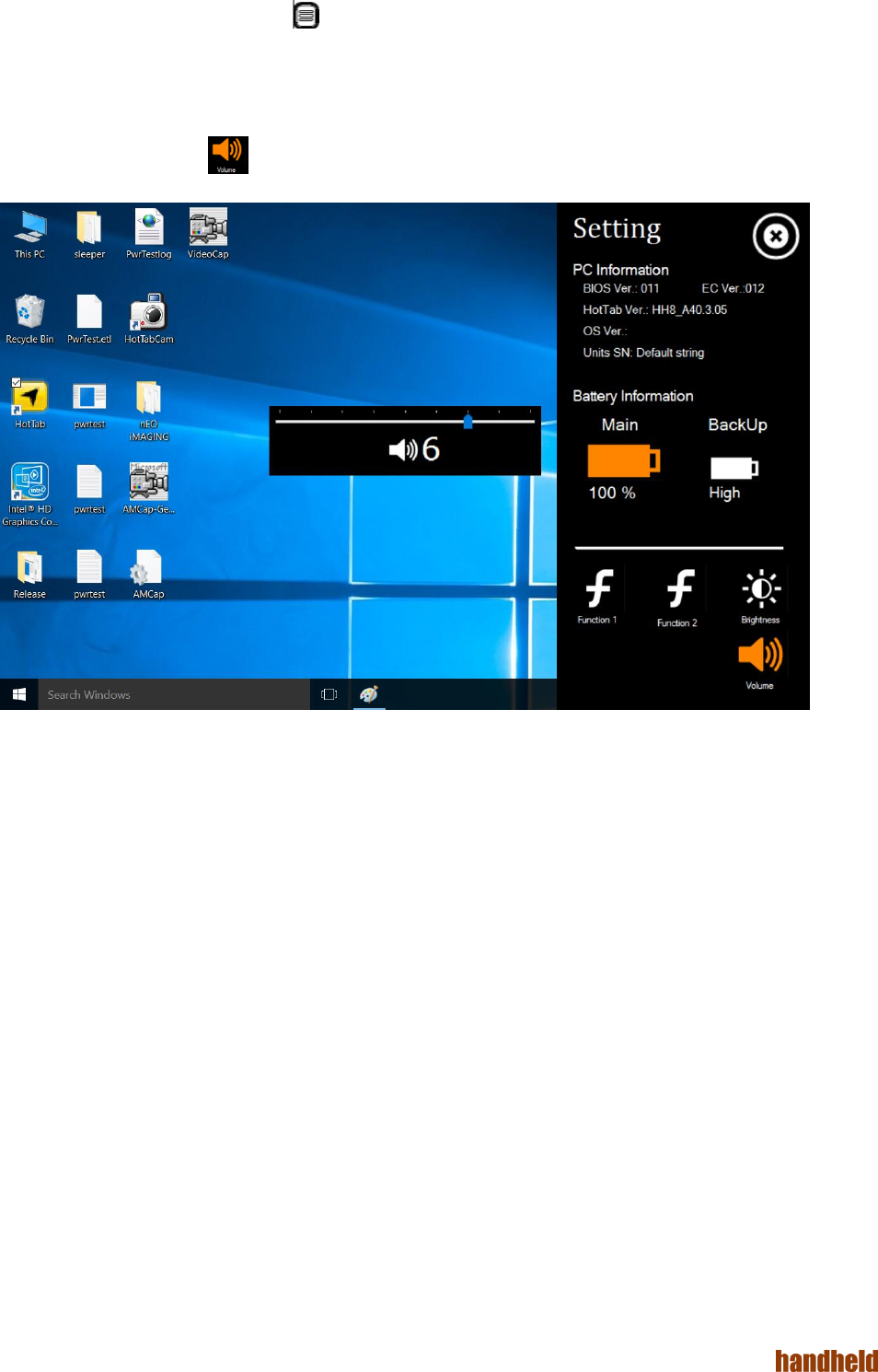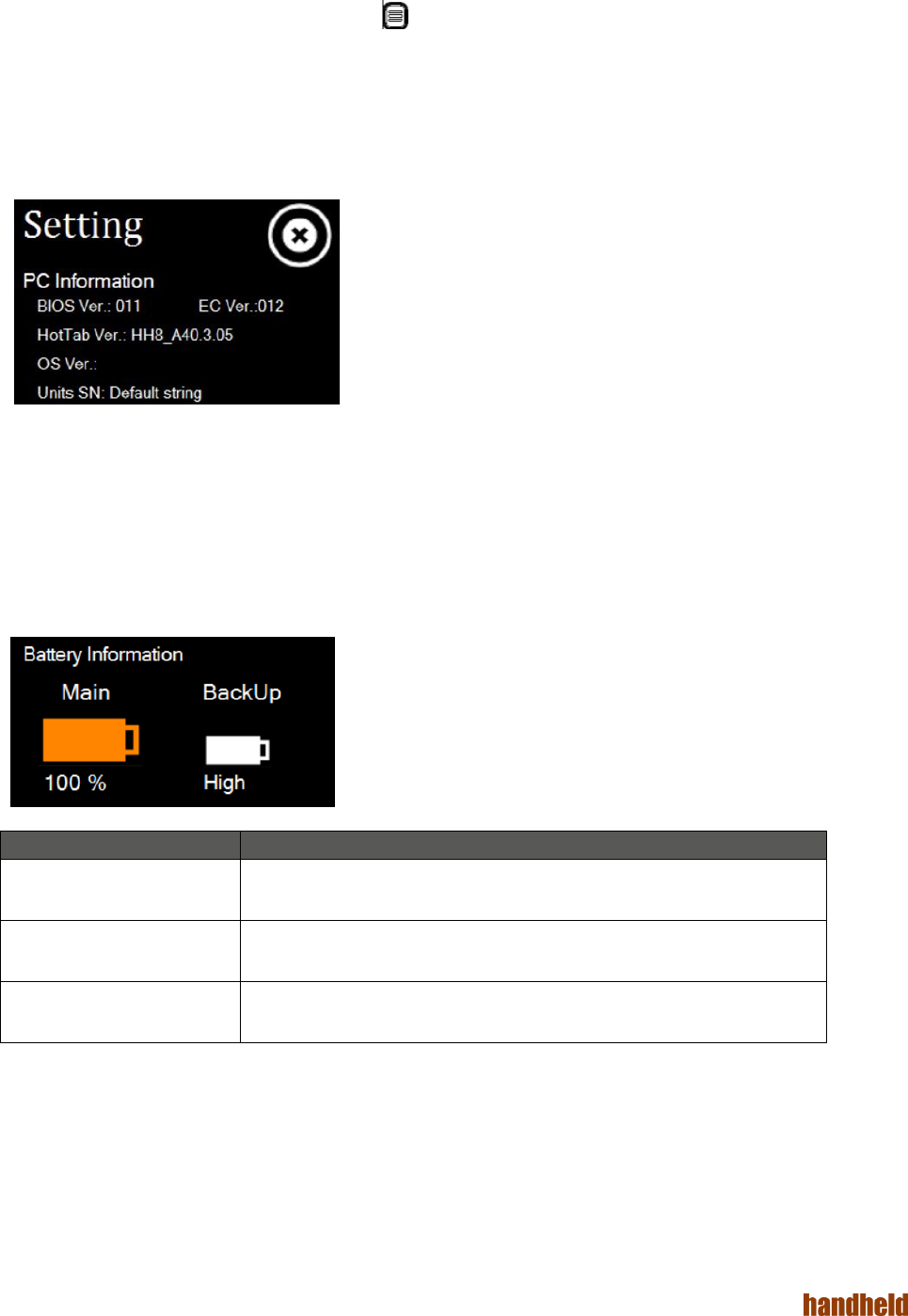 1. While the tablet is powered on, go to Hottab utility to check on the power level of the Backup