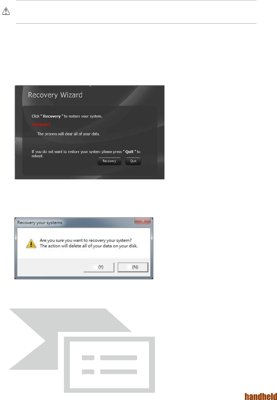 WARNING - Before starting the recovery process, be sure to backup all user data, as all data will be lost after the recovery