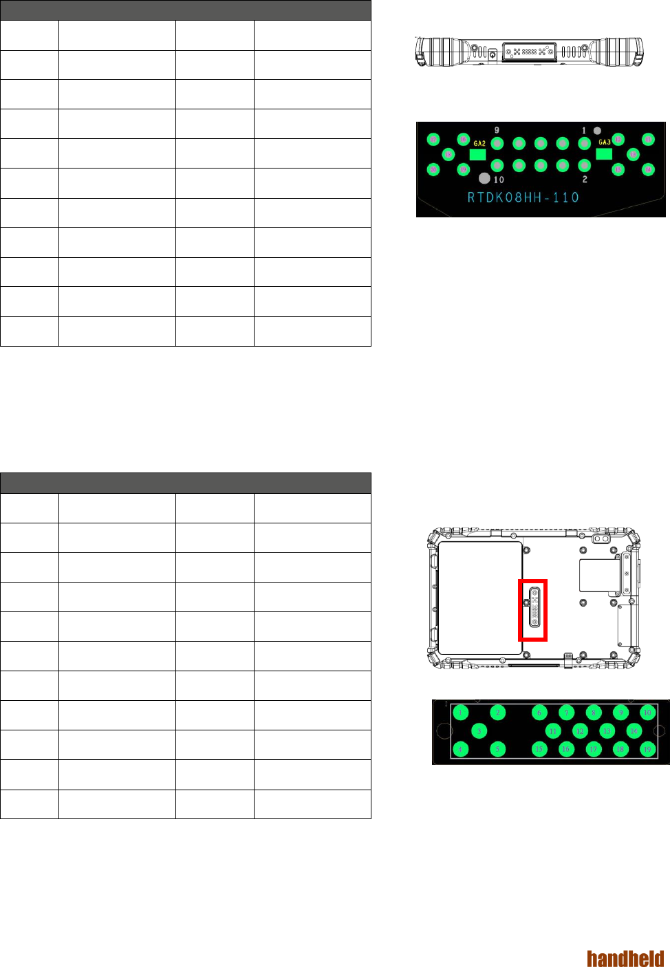ALGIZ 8X tablet computer supports one 20-pin docking connector at the bottom side. The pin definition is