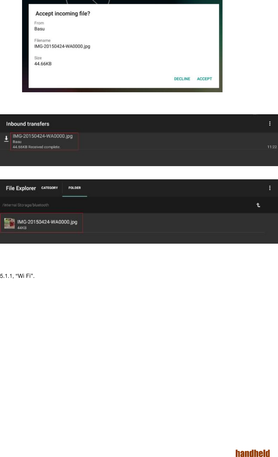 You can use File Explorer application to see all files received from Bluetooth devices as shown in Figure 8.8,