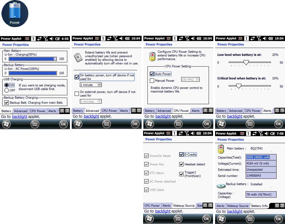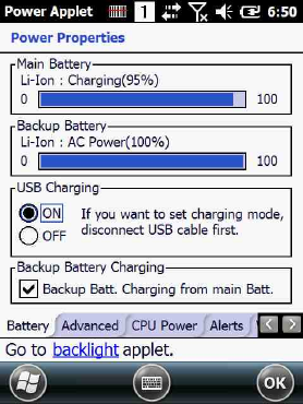 When a terminal is properly seated, the base powers the terminal, charges the terminal’s main battery pack, and launches