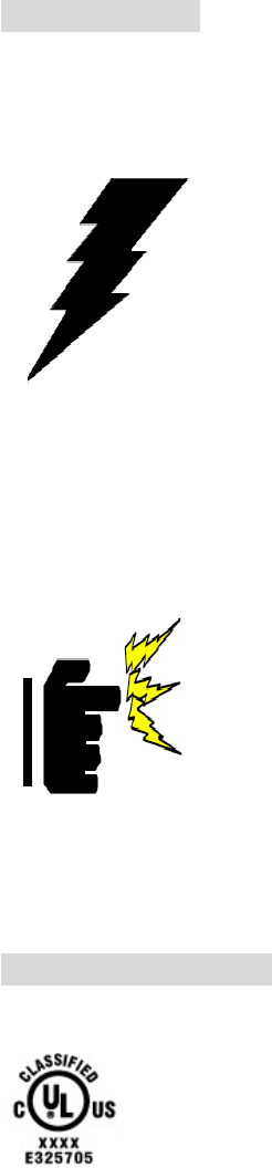 UL Classification: Class I mark: with respect to electronic shock; Fire and