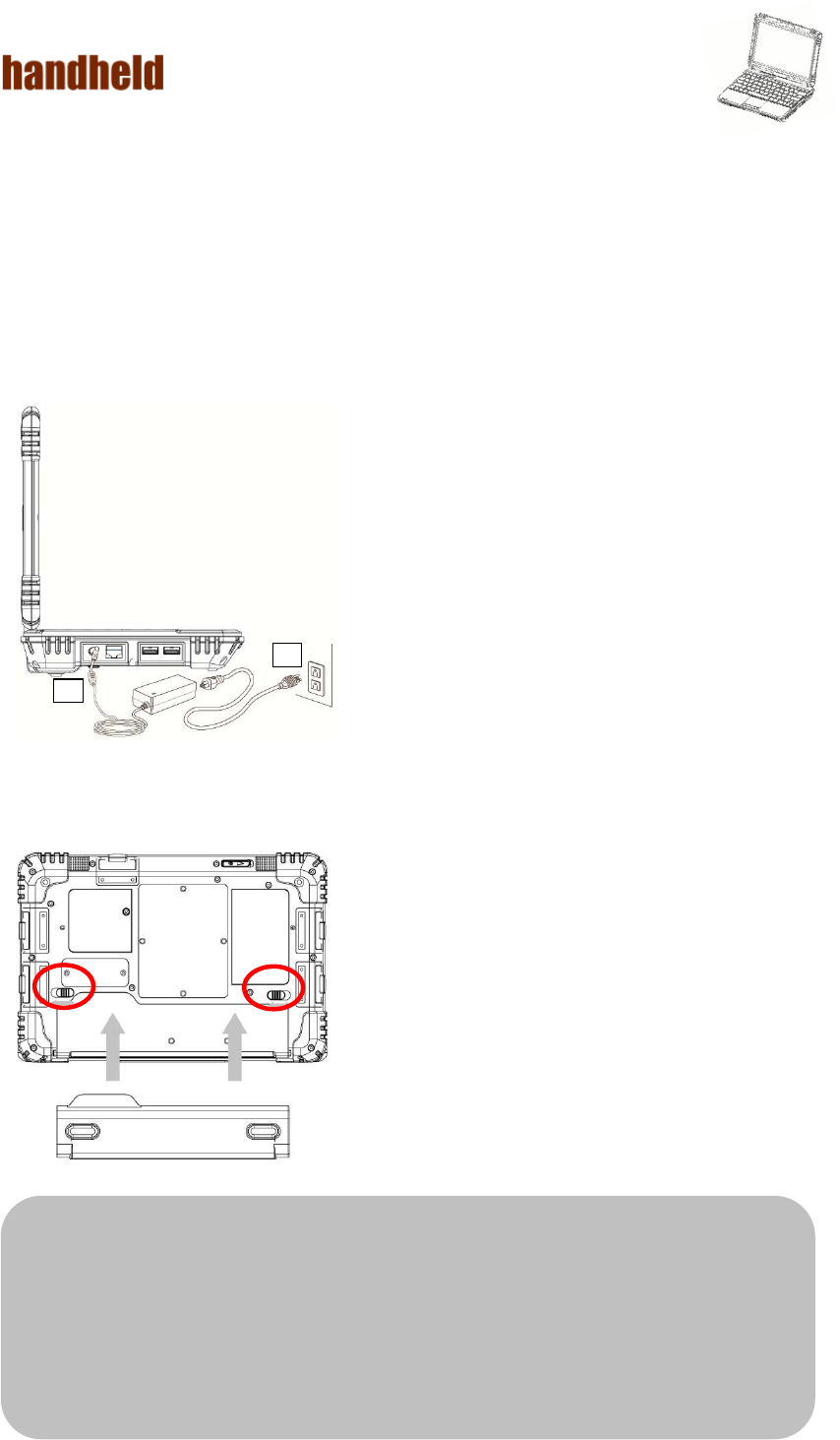 The Handheld Rugged Netbook Power is supplied by Power Adapter and Battery