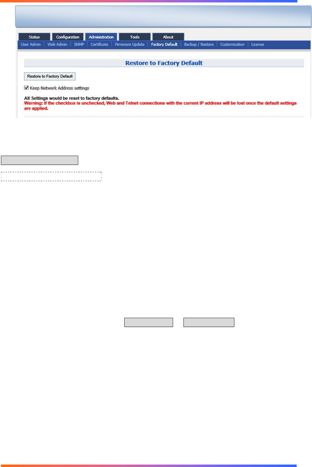 Keep Network Address Settings: Select this if user doesn’t wish to reset the IP address