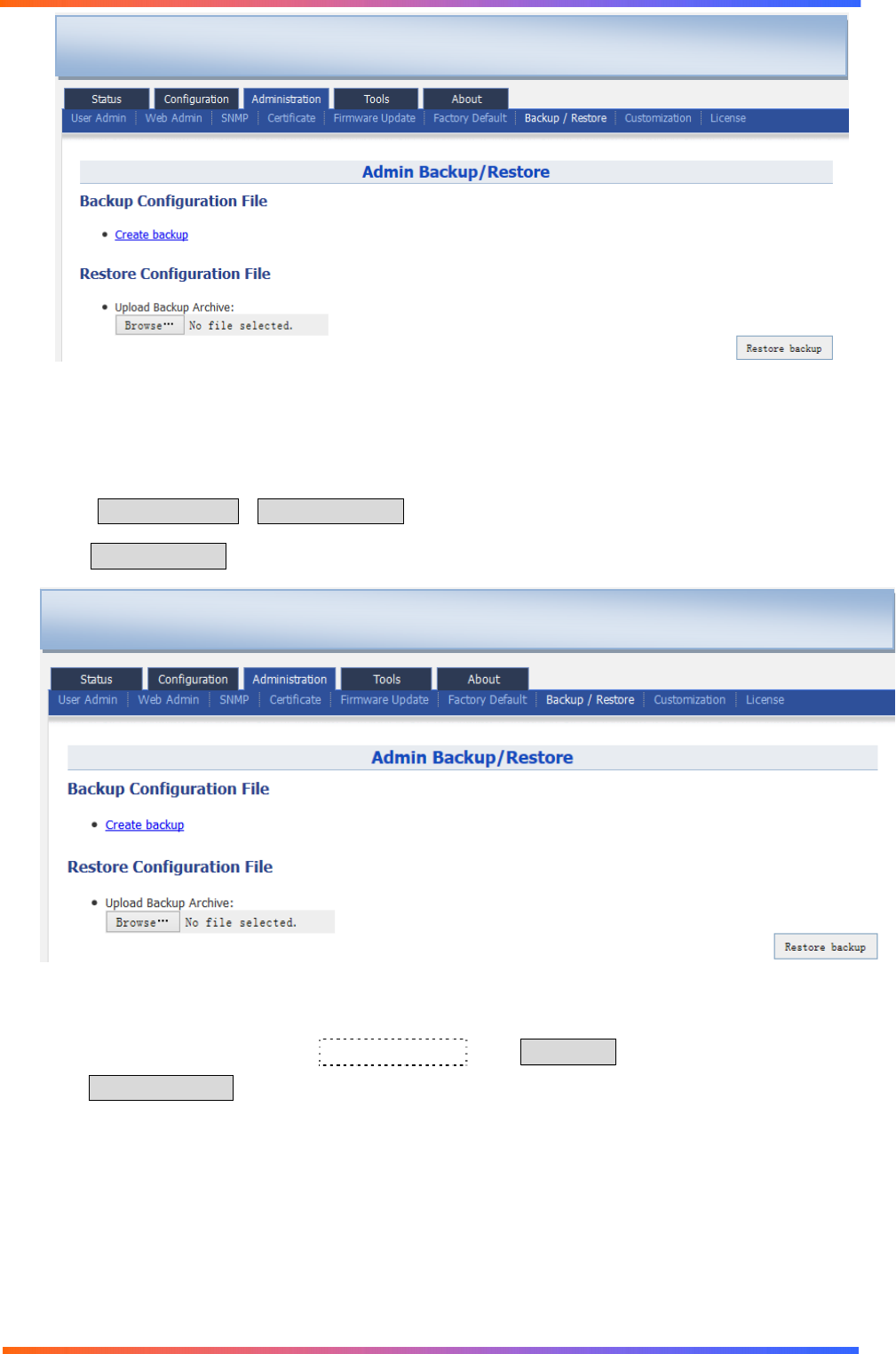 3. To restore configuration,Under Backup Archive, press Browse…,and select the backup file,