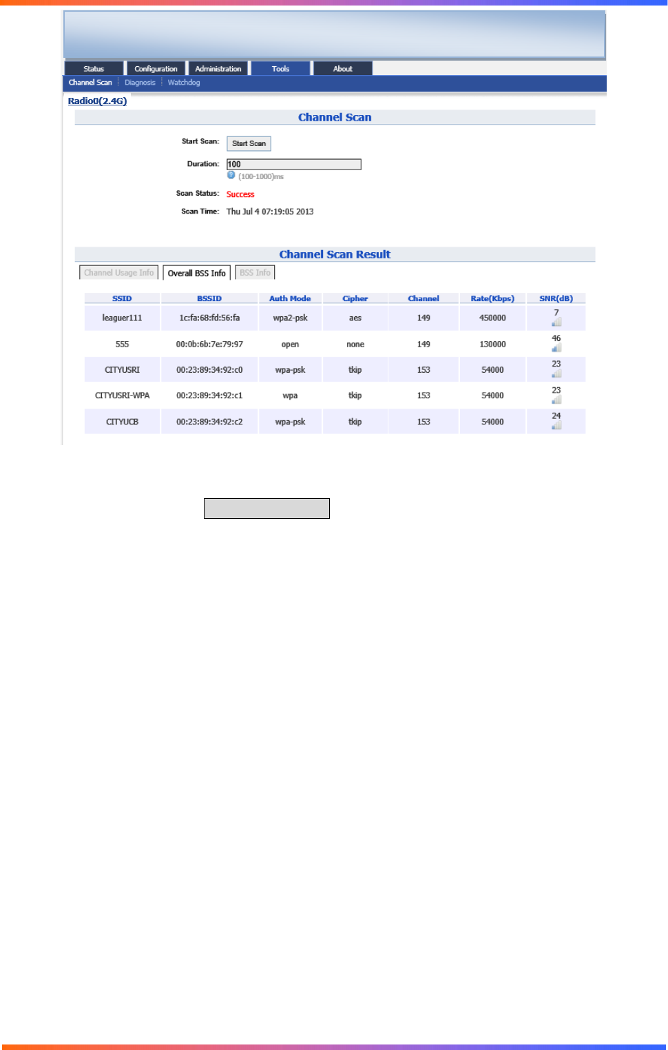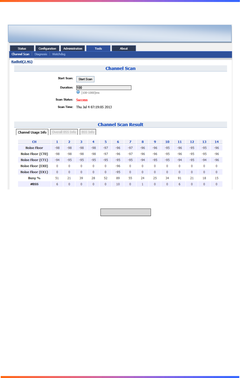 From the Channel Scan Result,press on Channel Usage Info user will see the condition of 2.4G