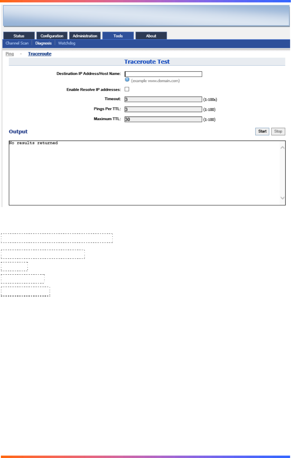 Press Tools -> Diagnosis -> Traceroute to start the trace.