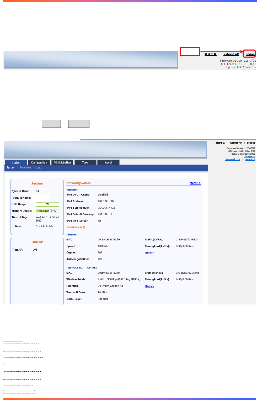 Once restore to factory default configuration, user can login to the AP-100 with the following